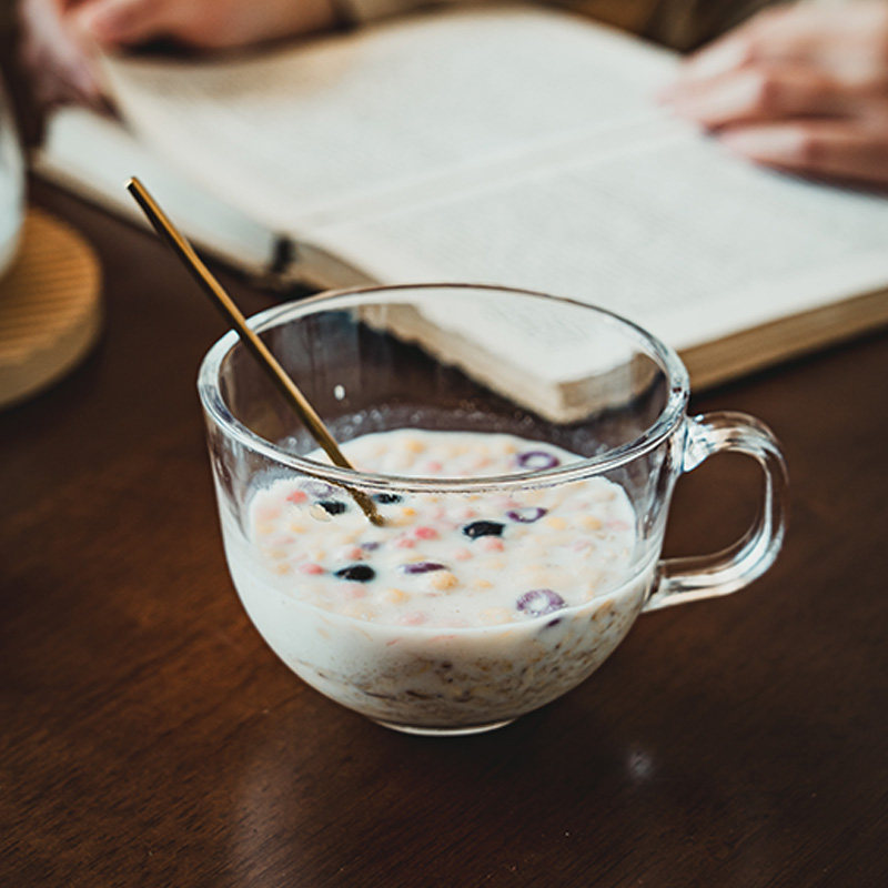 北欧大容量玻璃奶昔杯燕麦早餐杯