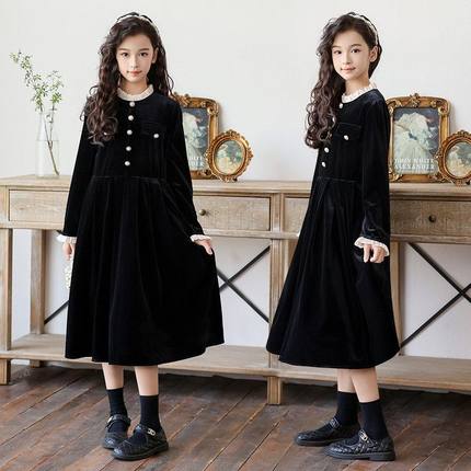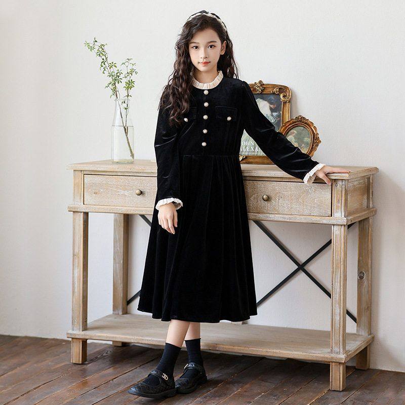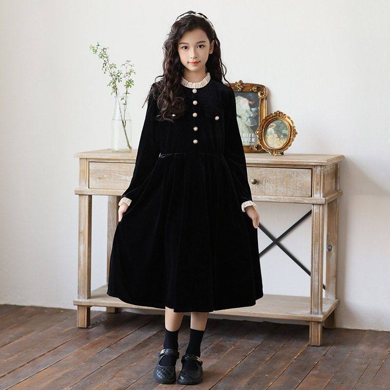 女童连衣裙秋冬装2025新款韩版小香风女中大童金丝绒裙儿童公主裙
