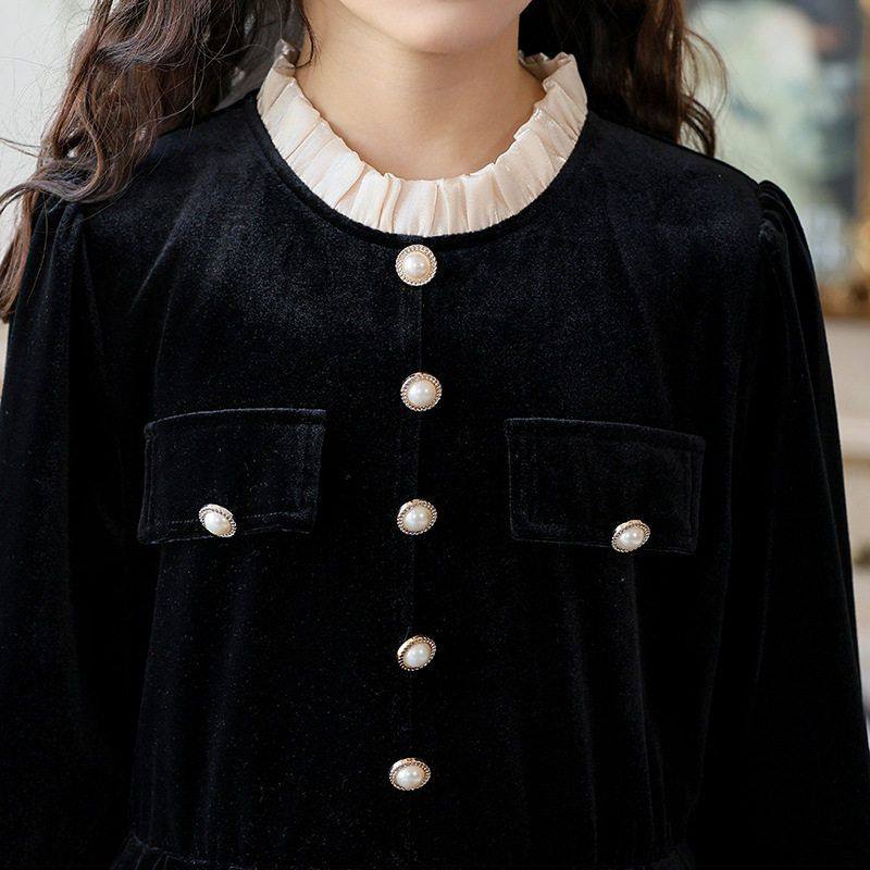 女童秋冬小香风金丝绒公主裙