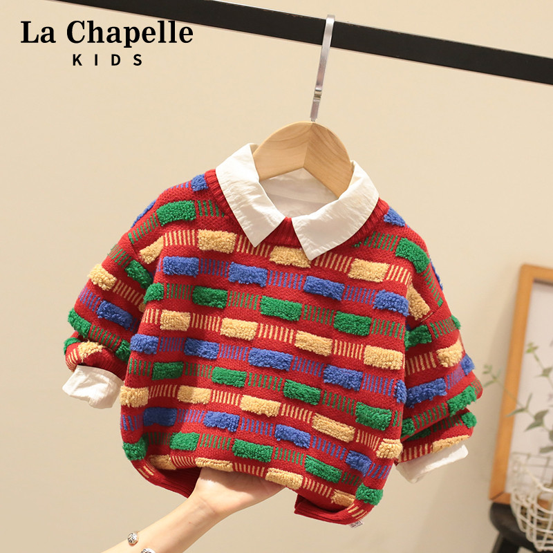 拉夏贝尔童装男童毛衣圣诞洋气儿童冬装保暖上衣宝宝加厚针织衫潮