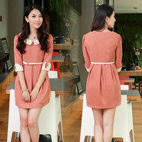 品牌撤柜 2015春装新款甜美钩花娃娃领厚实立体小点棉针织连衣裙