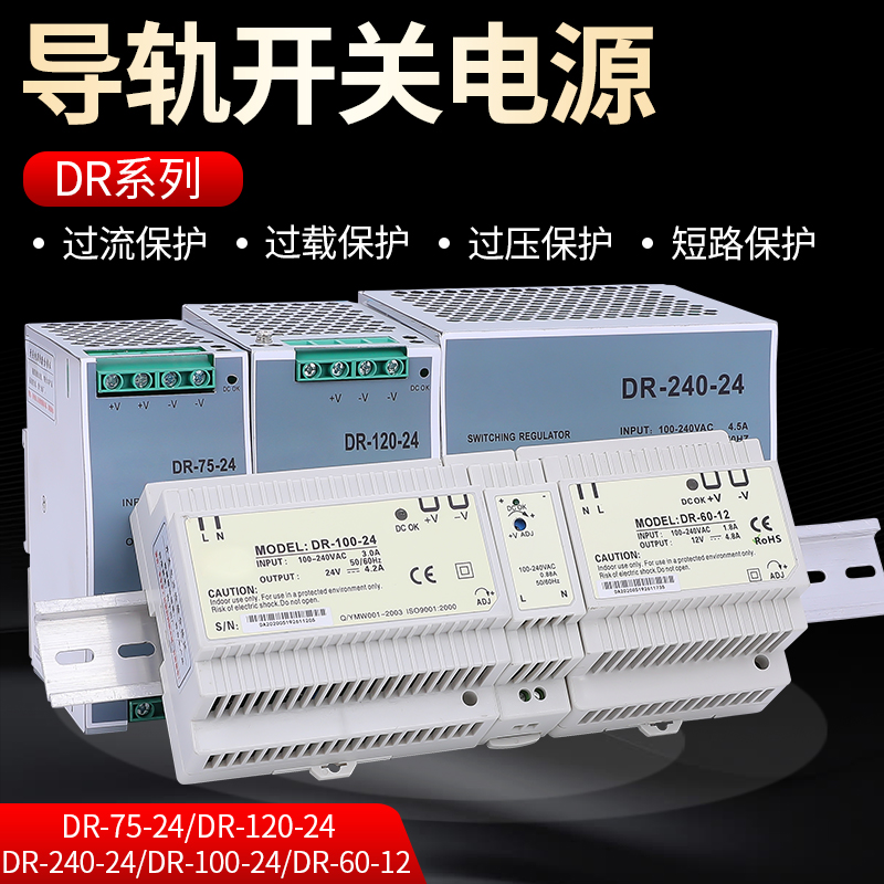 导轨式开关电源24v变压器220转12V5A轨道式直流DR-15/30W/60W/120