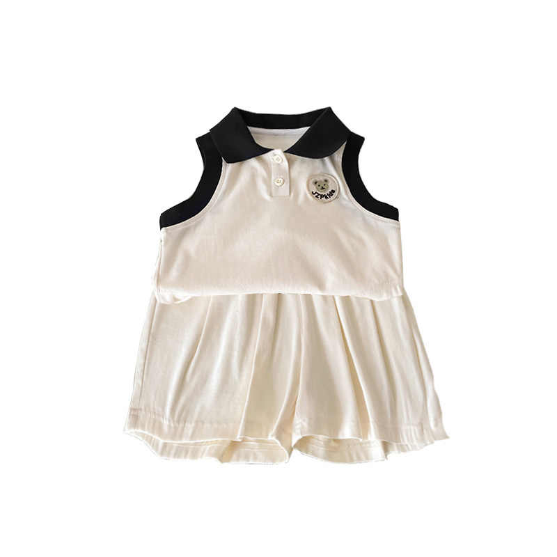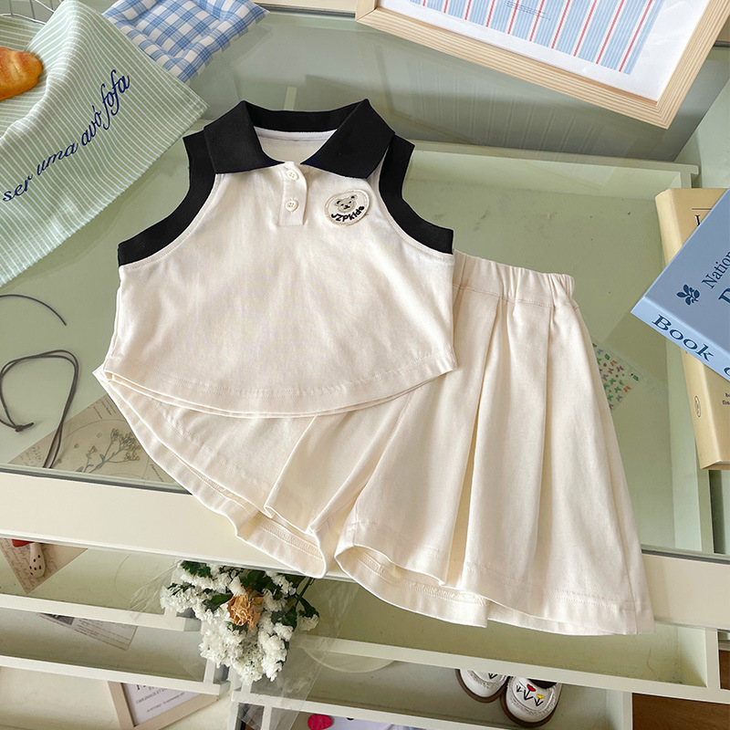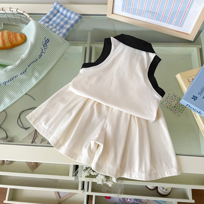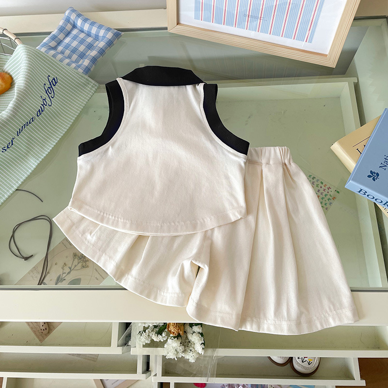 【现货】XT254022女童套装2025夏季背心翻领无袖上衣阔腿裙裤套装