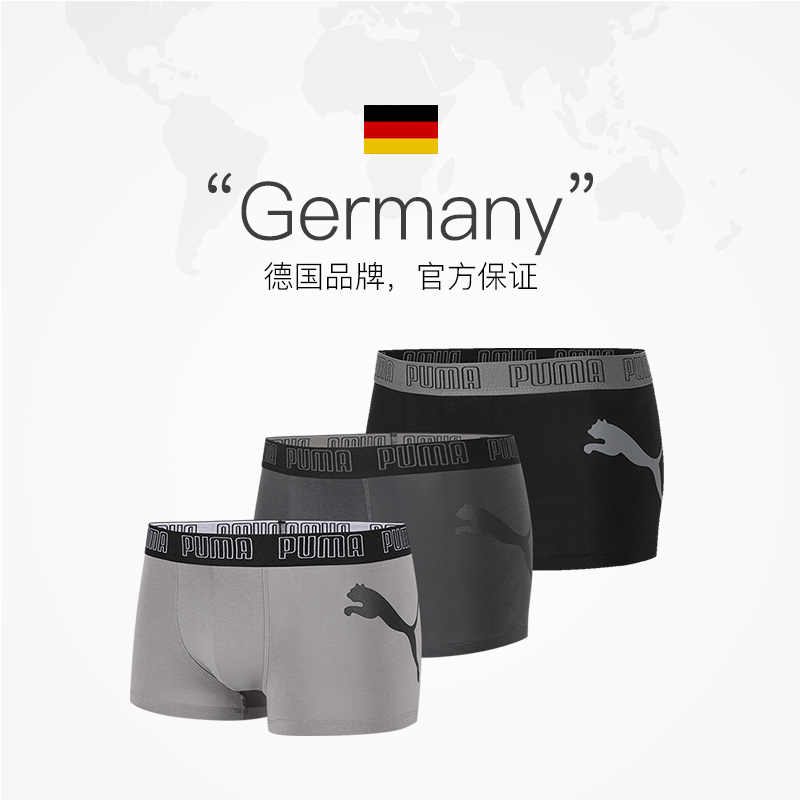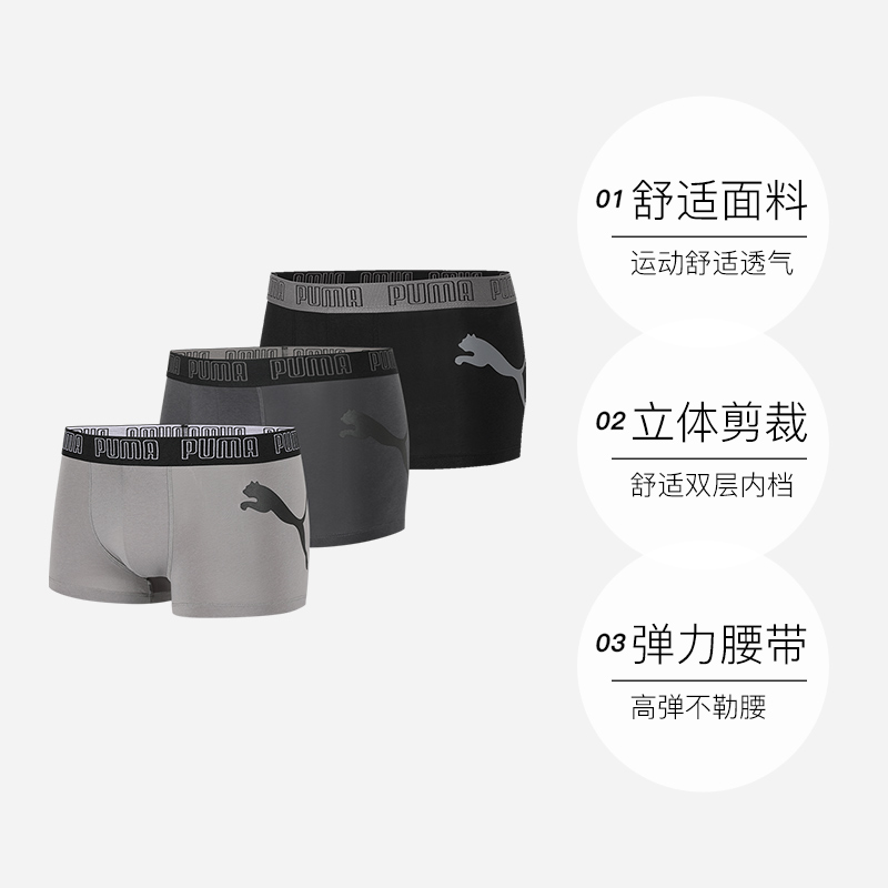 【自营】PUMA彪马男士内裤透气运动休闲经典印花男款平角裤3条装