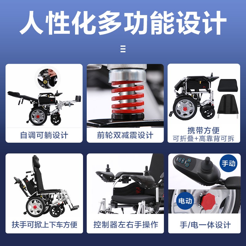 吉芮电动轮椅折叠轻便智能全自动老人老年残疾人可躺锂电池代步车