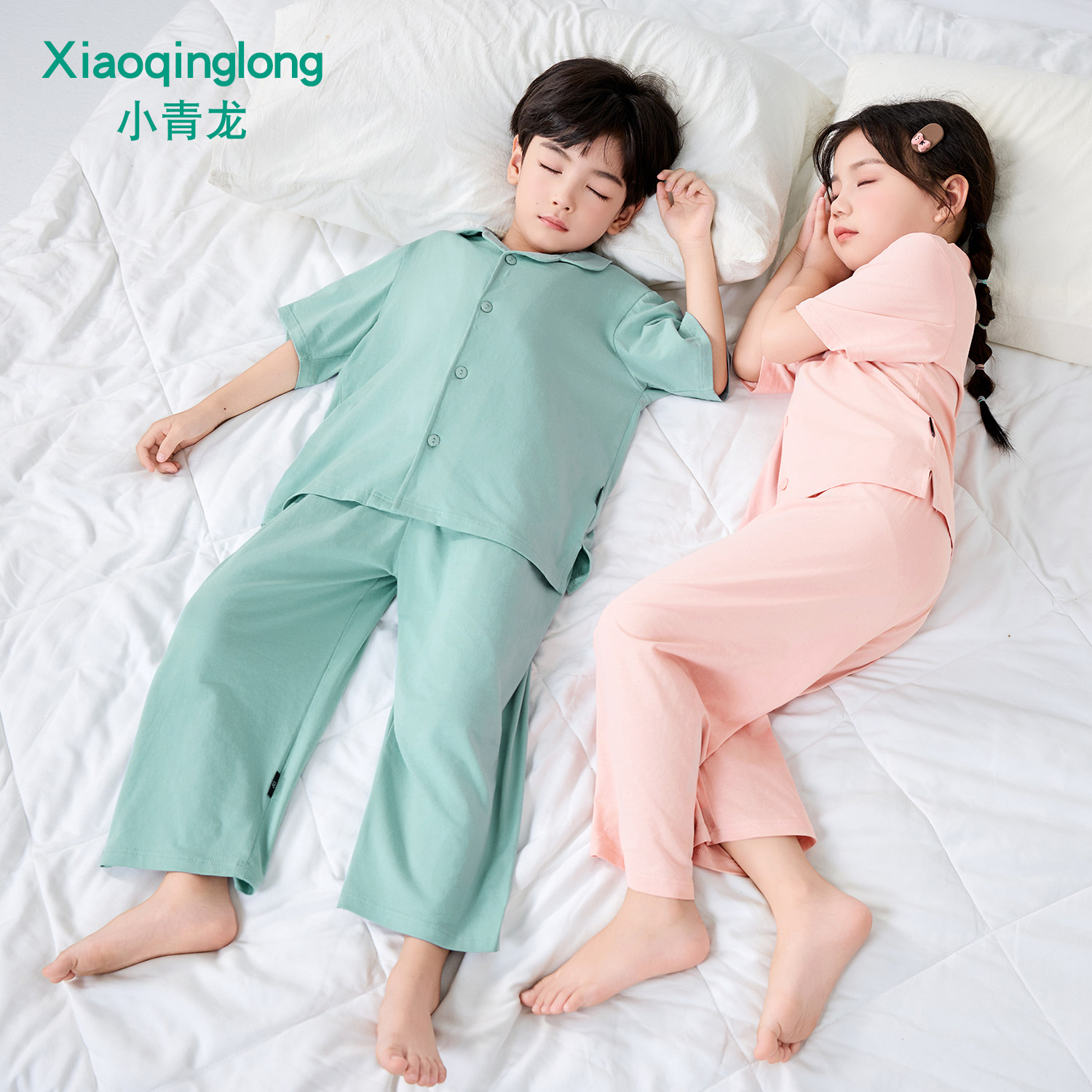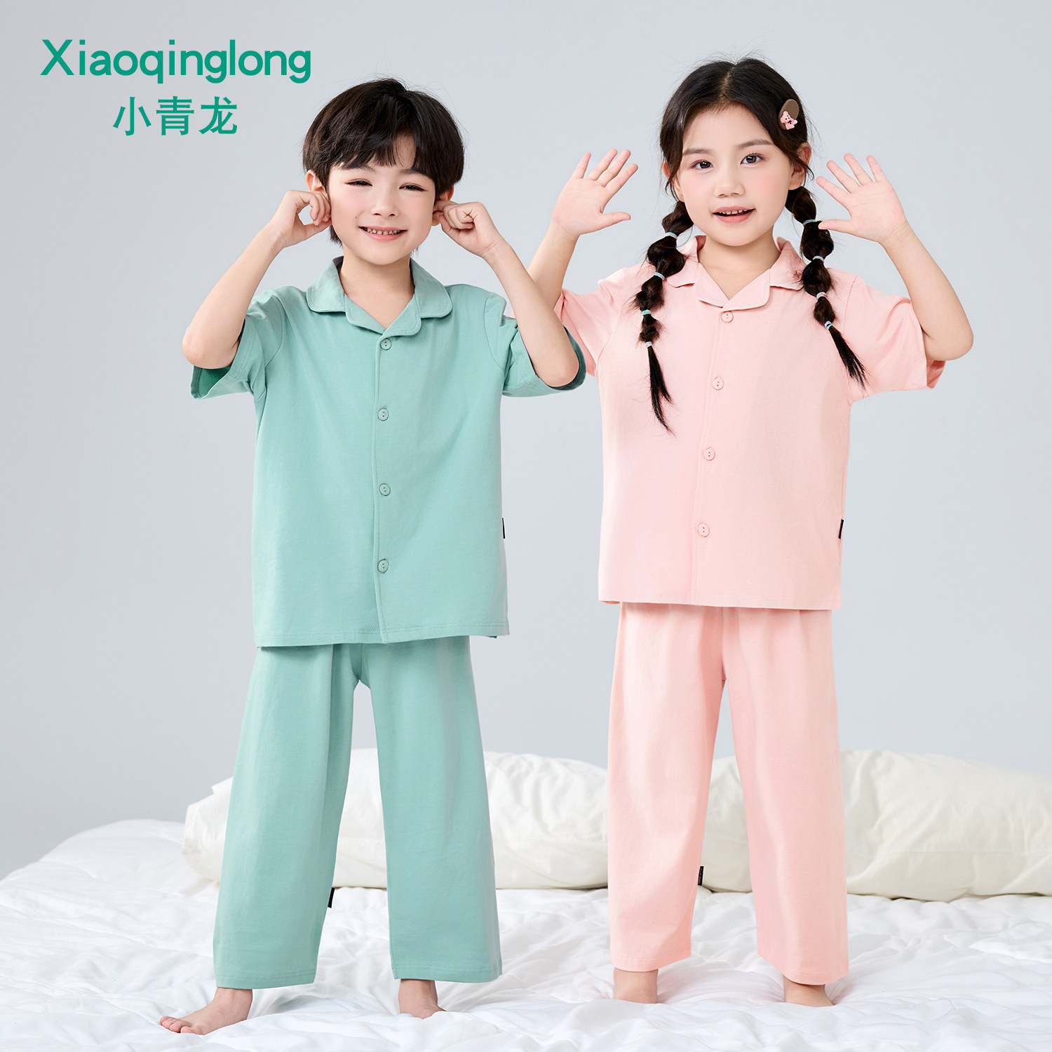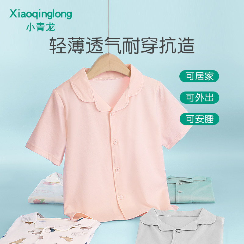 小青龙春夏季儿童纯棉短袖长裤男童女童宝宝中大童家居服睡衣套装