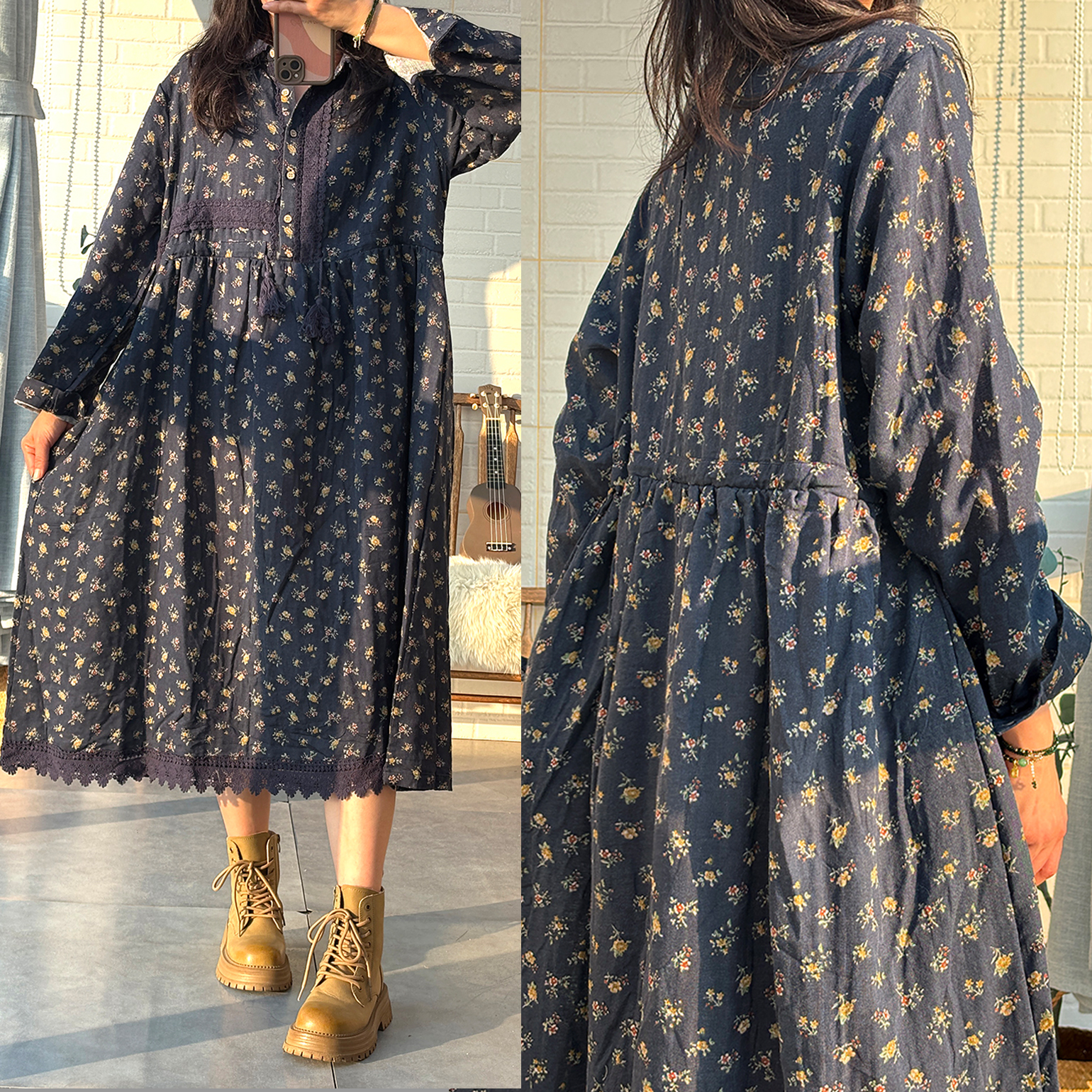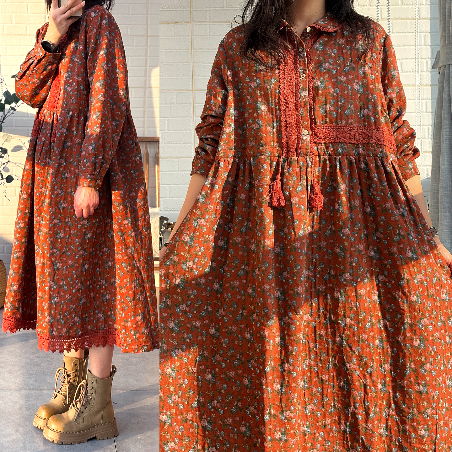 高级感法式浪漫文艺复古纯棉温柔碎花裙长袖连衣裙宽松显瘦裙子女