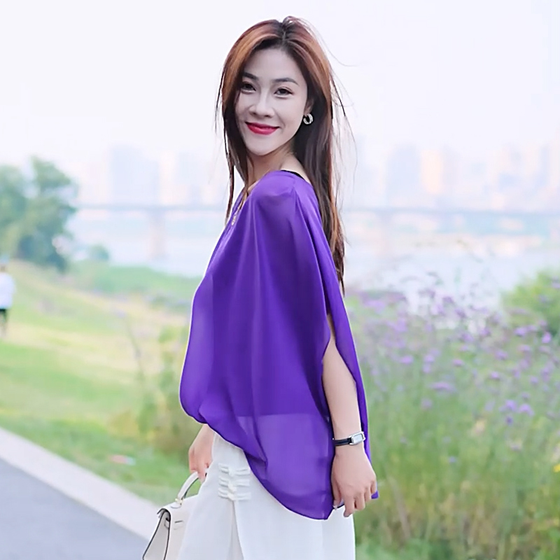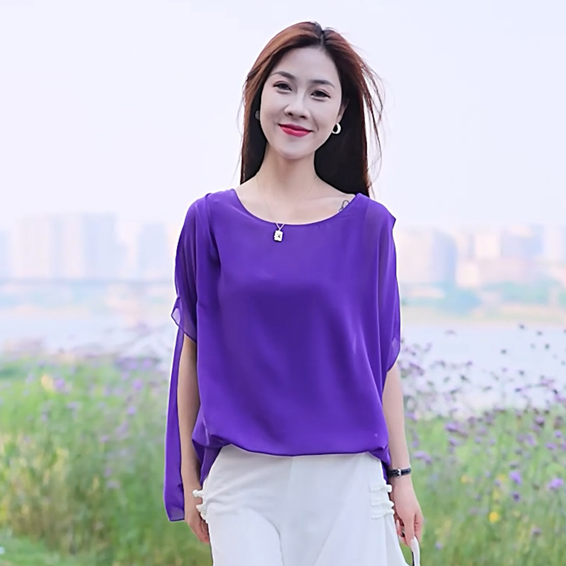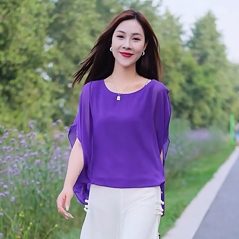 缪真半袖蝙蝠衫宽松雪纺衫女