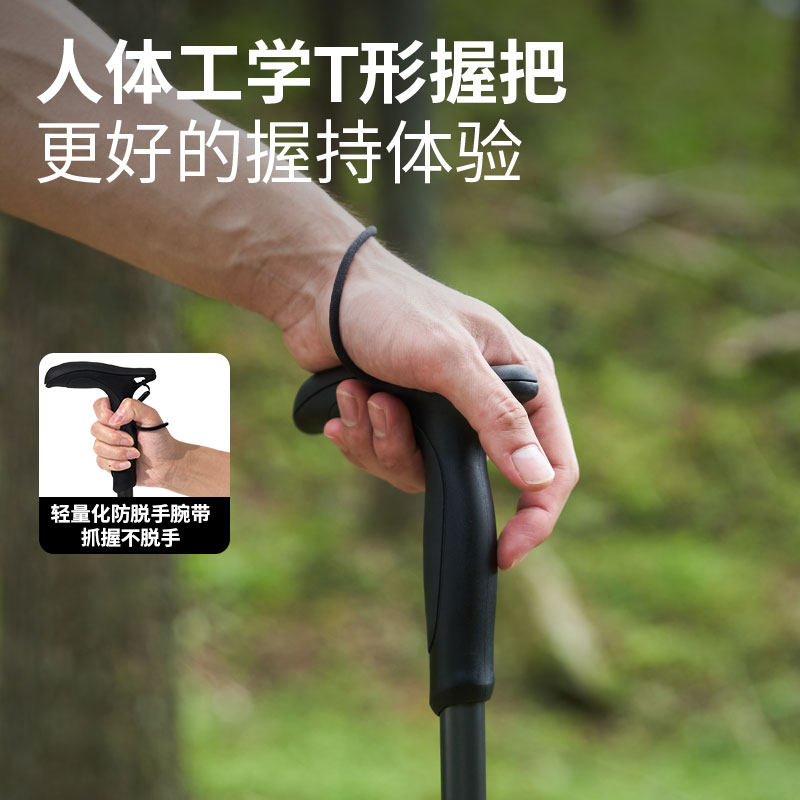 牧高笛铝合金T柄伸缩登山杖伸缩专业户外徒步爬山三节手杖