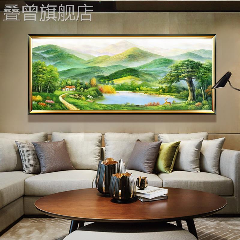 壁画流水办公室沙发油画聚财客厅风水挂画山水生财装饰画背景墙