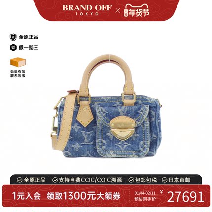 中古LV路易威登女包A级95新Nano Speedy波士顿手提斜挎包牛仔单宁