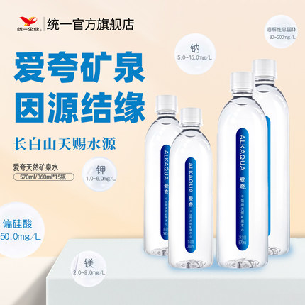 统一ALKAQUA爱夸长白山天然矿泉水饮用水无臭氧生产整箱装