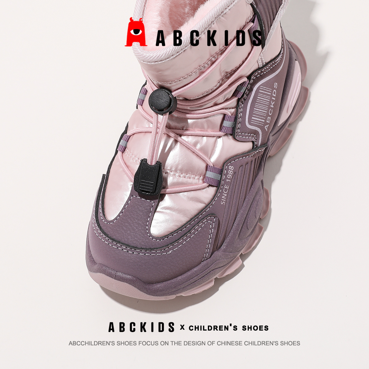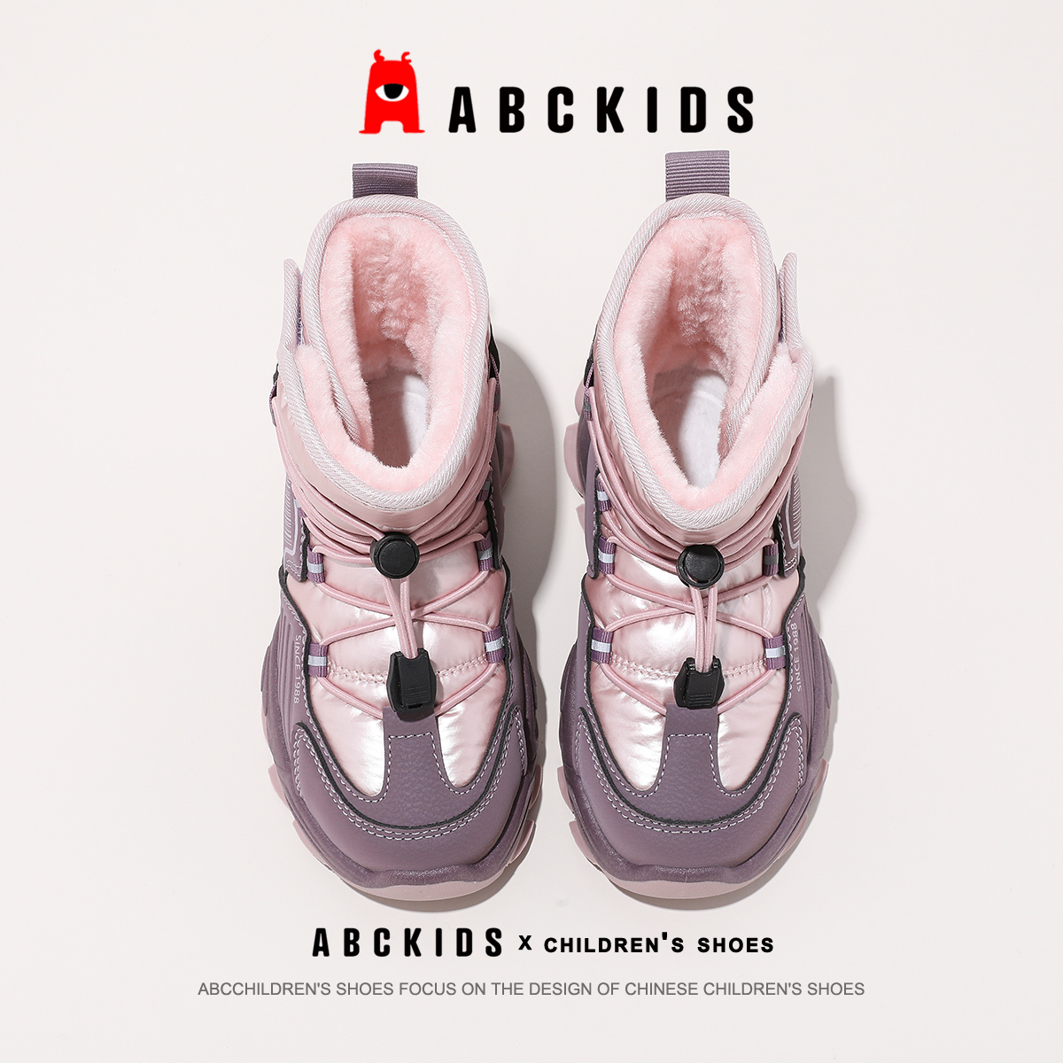 Abckids童鞋女童雪地靴冬季新款儿童棉鞋加绒加厚皮毛一体大棉靴