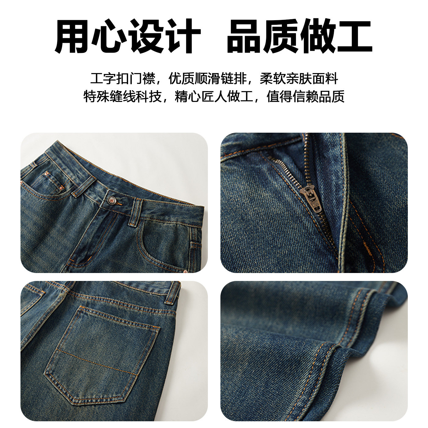【定制裤长】复古水洗宽松直筒ins美式牛仔裤男士冬季26新款潮