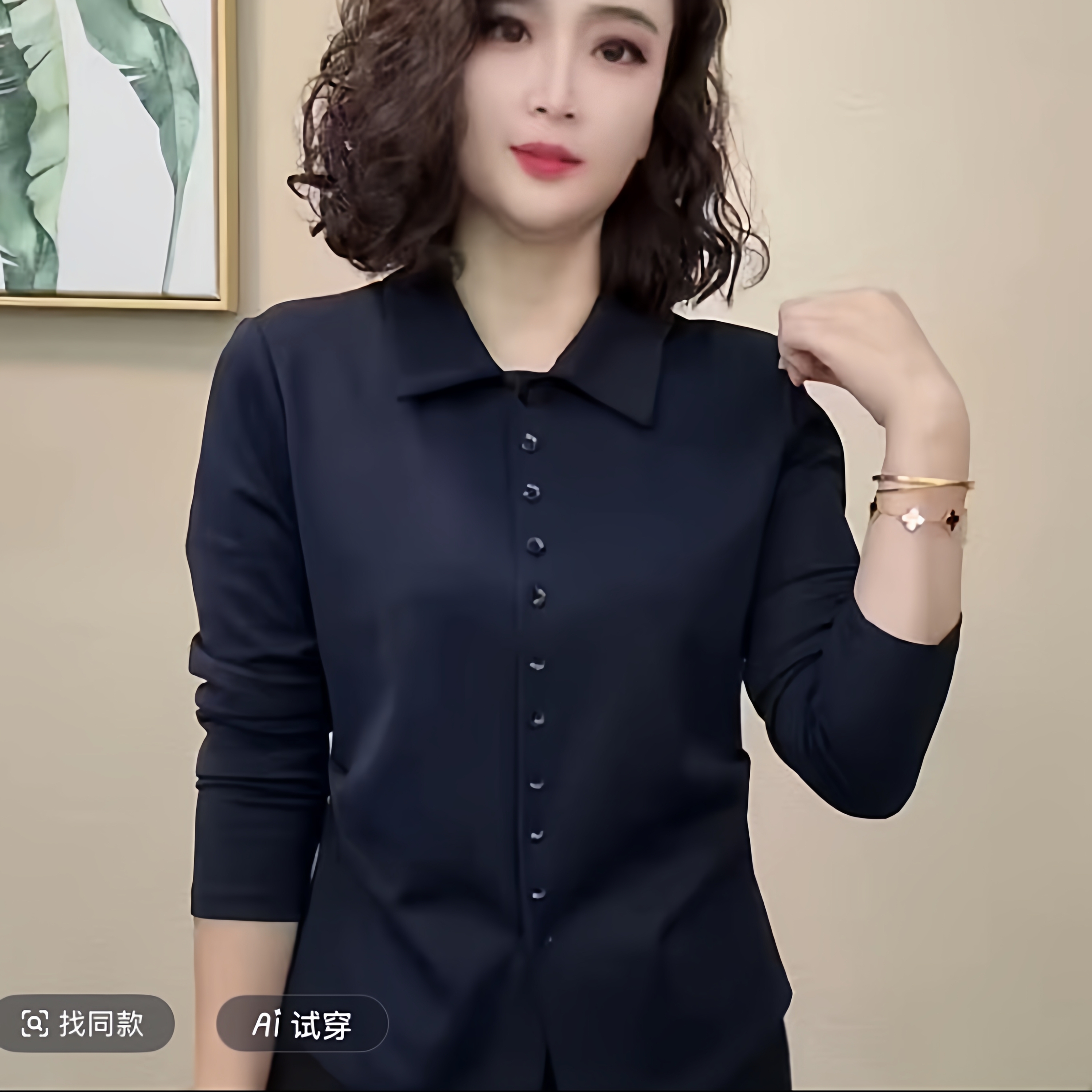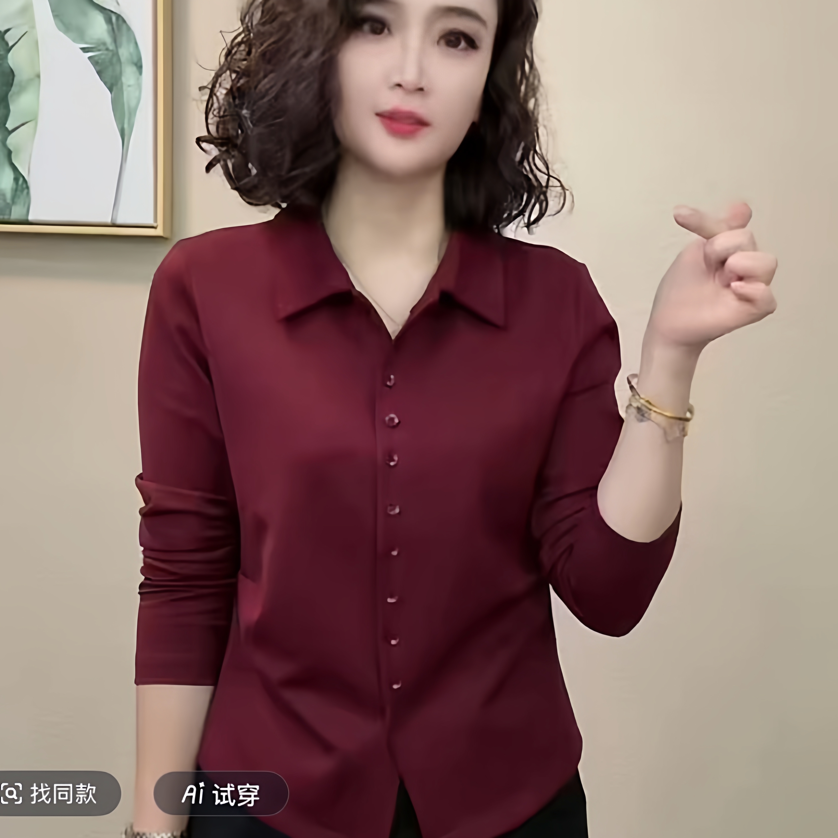 时尚洋气翻领长袖衬衫女春秋新款宽松显瘦开衫百搭减龄妈妈装外套