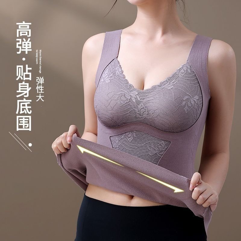 大码蕾丝修身显瘦保暖背心女士带胸垫德绒亲肤防寒厚款打底衫秋冬