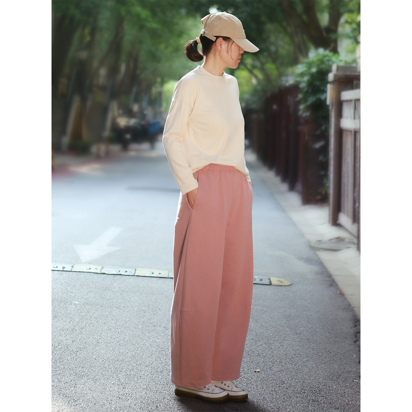 松紧腰卫裤慵懒风休闲裤弯刀裤女