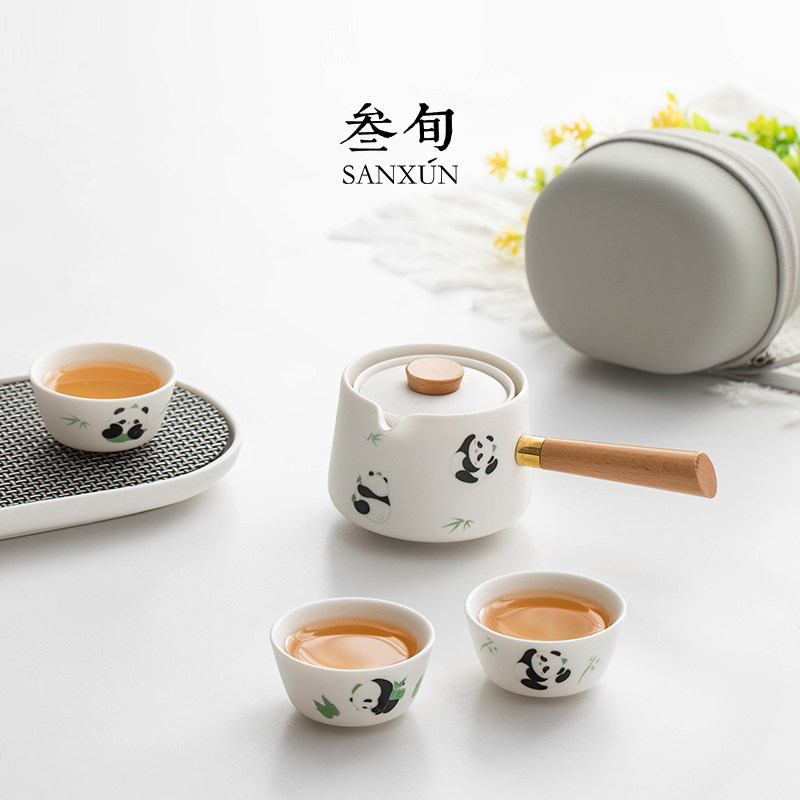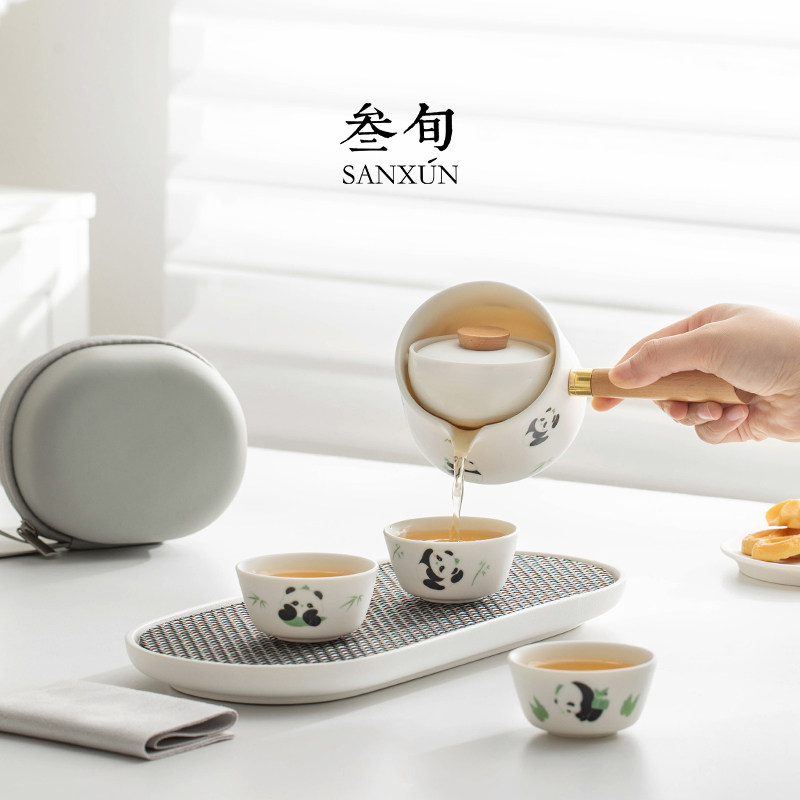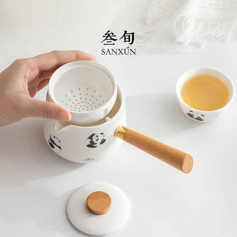 叁旬熊猫转转泡茶壶高档茶具套装旅行家用陶瓷喝茶杯懒人泡茶神器