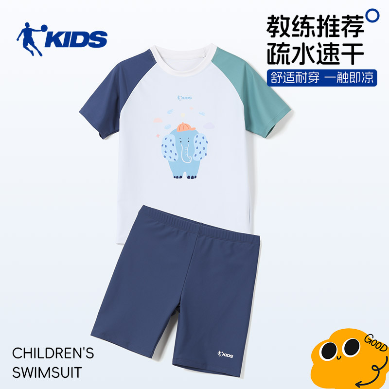 乔丹儿童分体泳衣男童2025新款中小童夏季卡通短袖防晒速干游泳衣