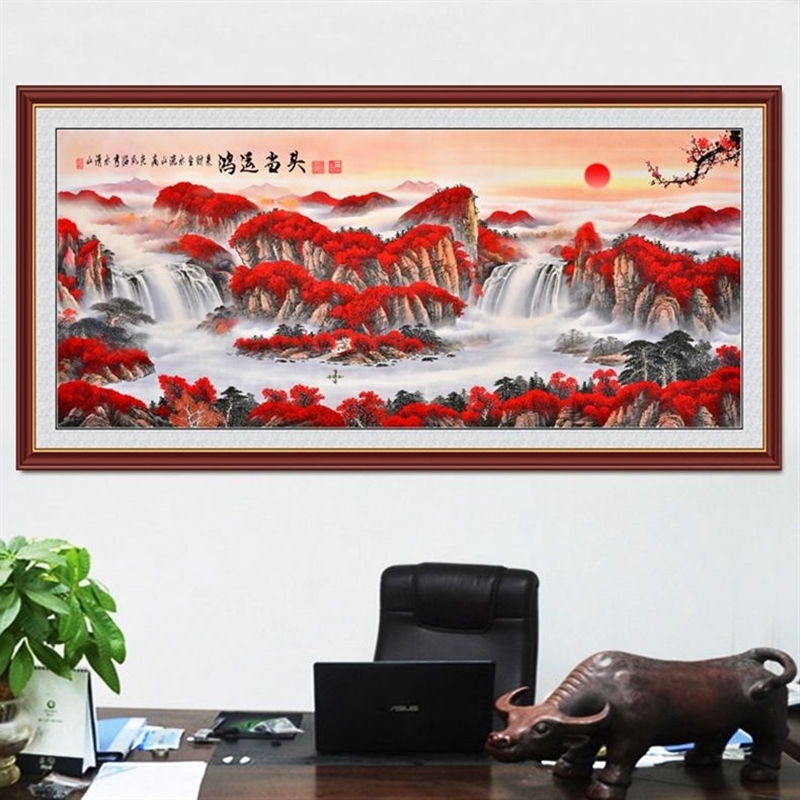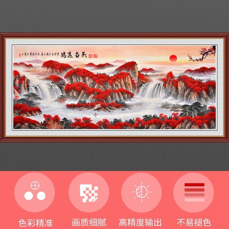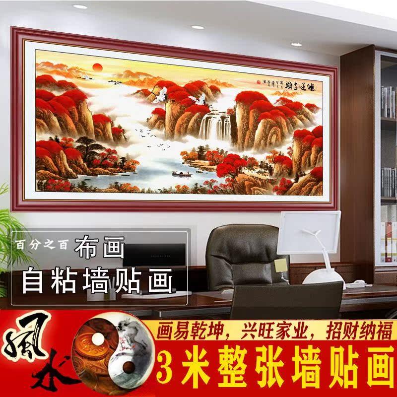 装饰画贴画壁画鸿运当头山水画聚宝盆客厅办公室招财风水背景墙画