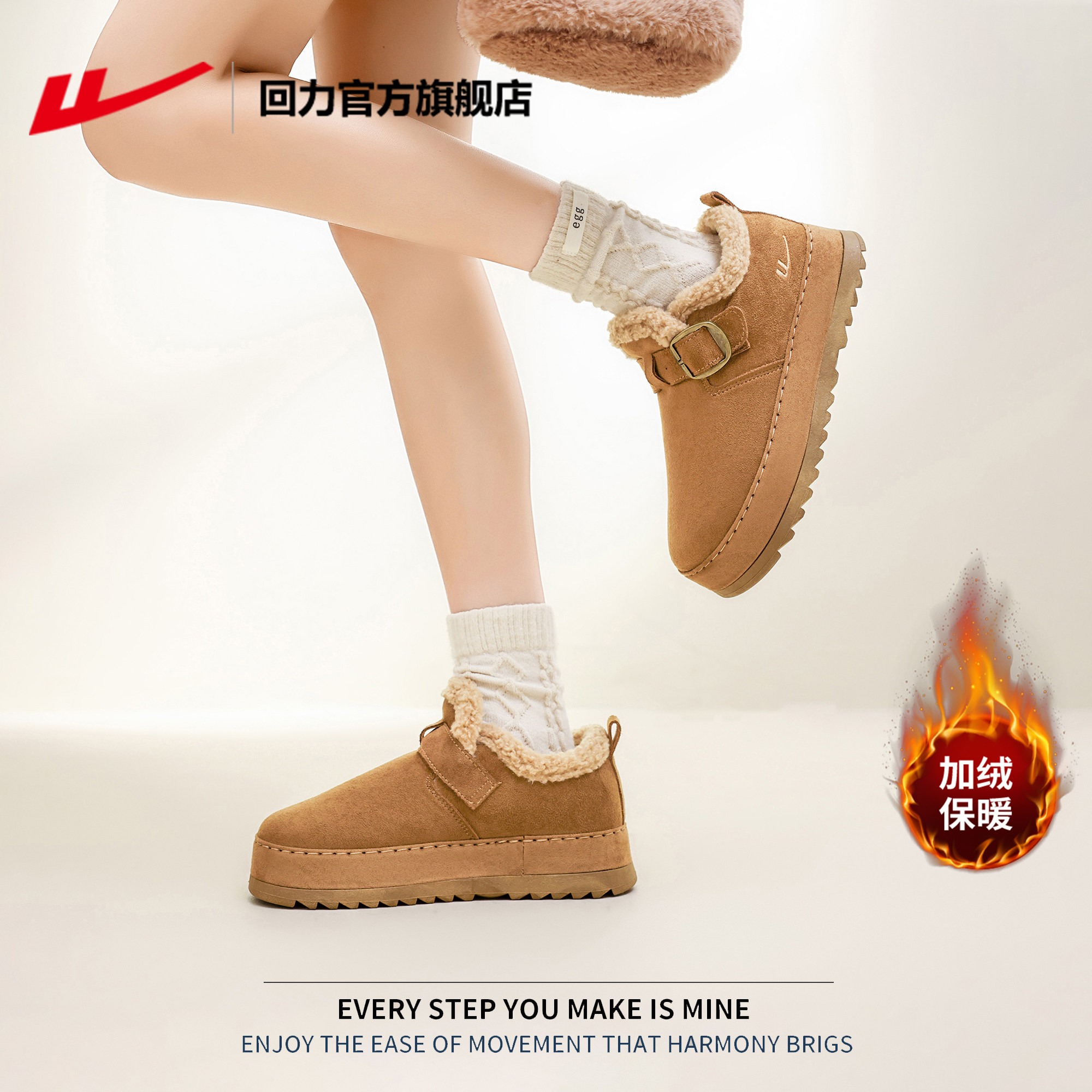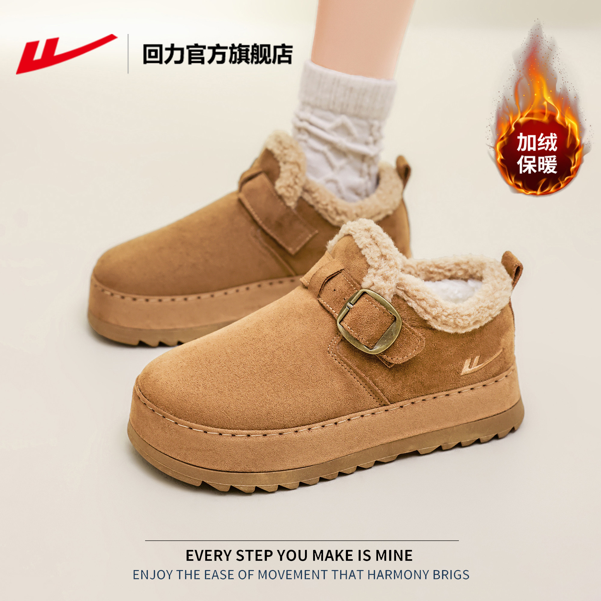 回力休闲勃肯鞋女款2025新款冬季加绒加厚保暖棉鞋女鞋子毛毛棉鞋