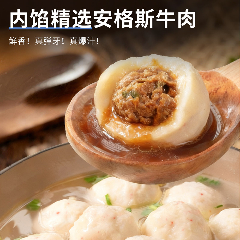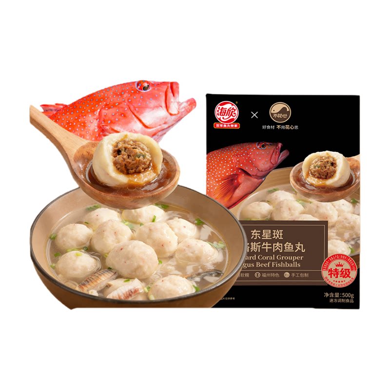 不花心手工包制高端东星斑安格斯牛肉鱼丸鲜香嫩弹双鲜组高端食材