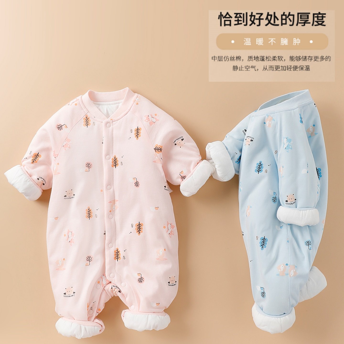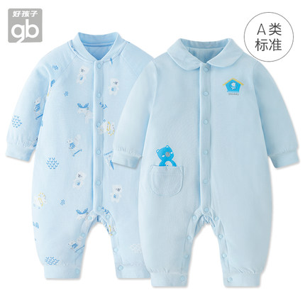 好孩子婴儿衣服冬开襟男女宝宝棉服加厚保暖新生儿夹棉连体睡衣