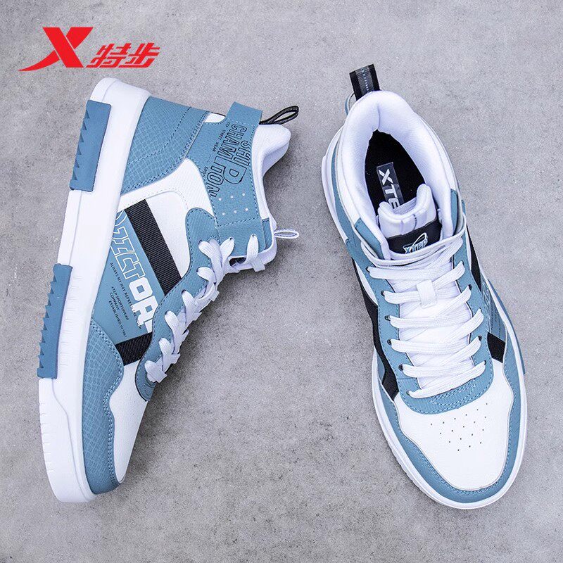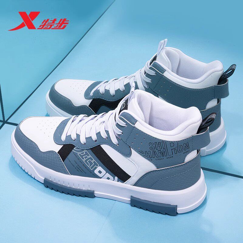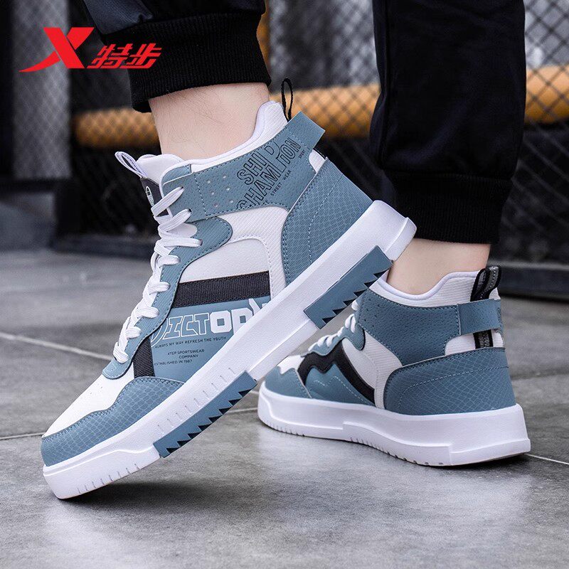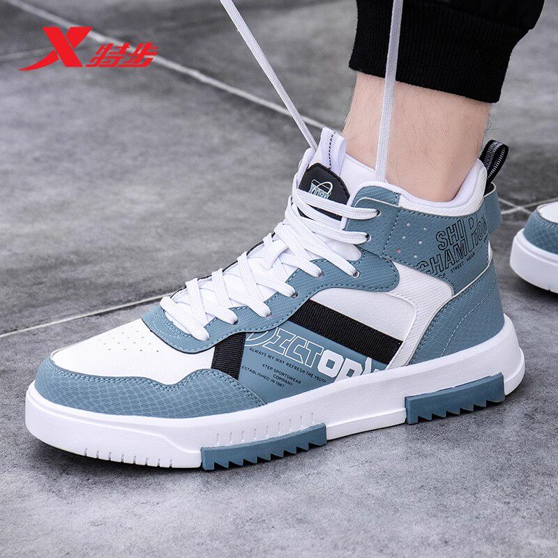 特步板鞋高帮男鞋春季皮面运动鞋官方旗舰店男款正品厚底休闲鞋子