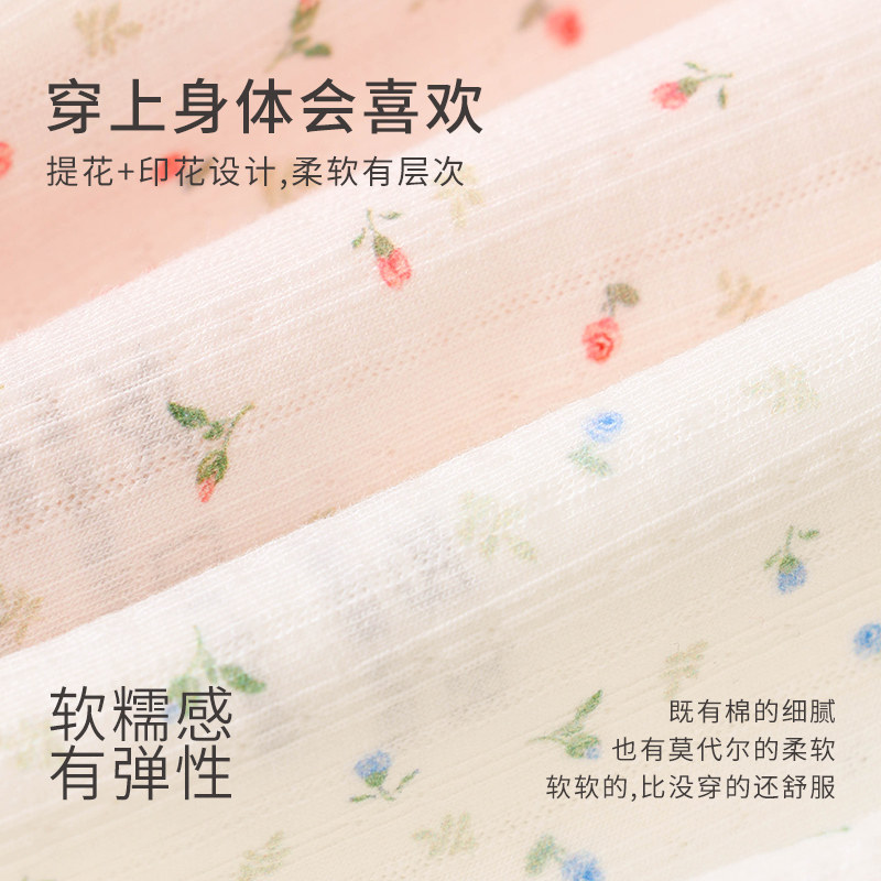 彩田印花内裤女蕾丝边棉莫混纺7A抗菌底裆亲肤透气舒适女士三角裤