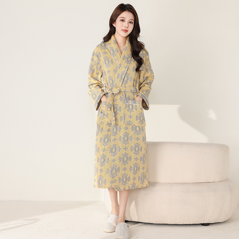 纯棉双层纱布浴袍春夏季薄款酒店民宿情侣睡袍女睡衣吸水轻薄浴衣
