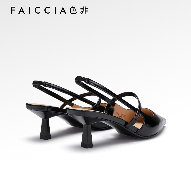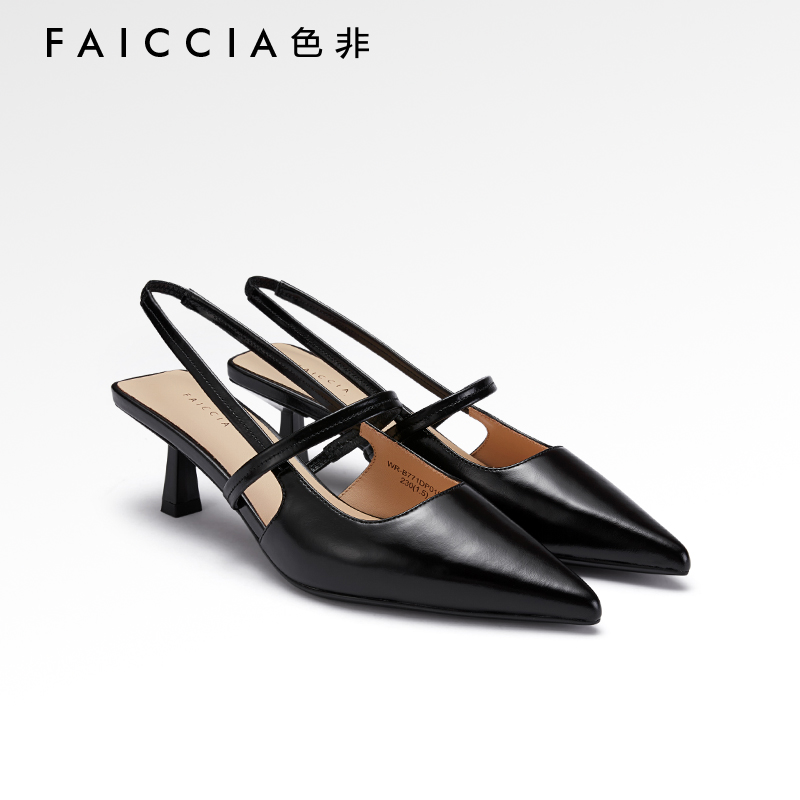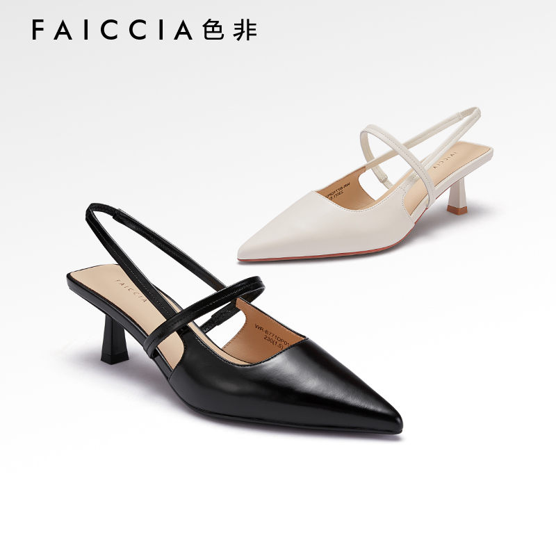 色非全真皮尖头半包凉鞋女夏季2025新款百搭晚晚风后空5cm细跟鞋