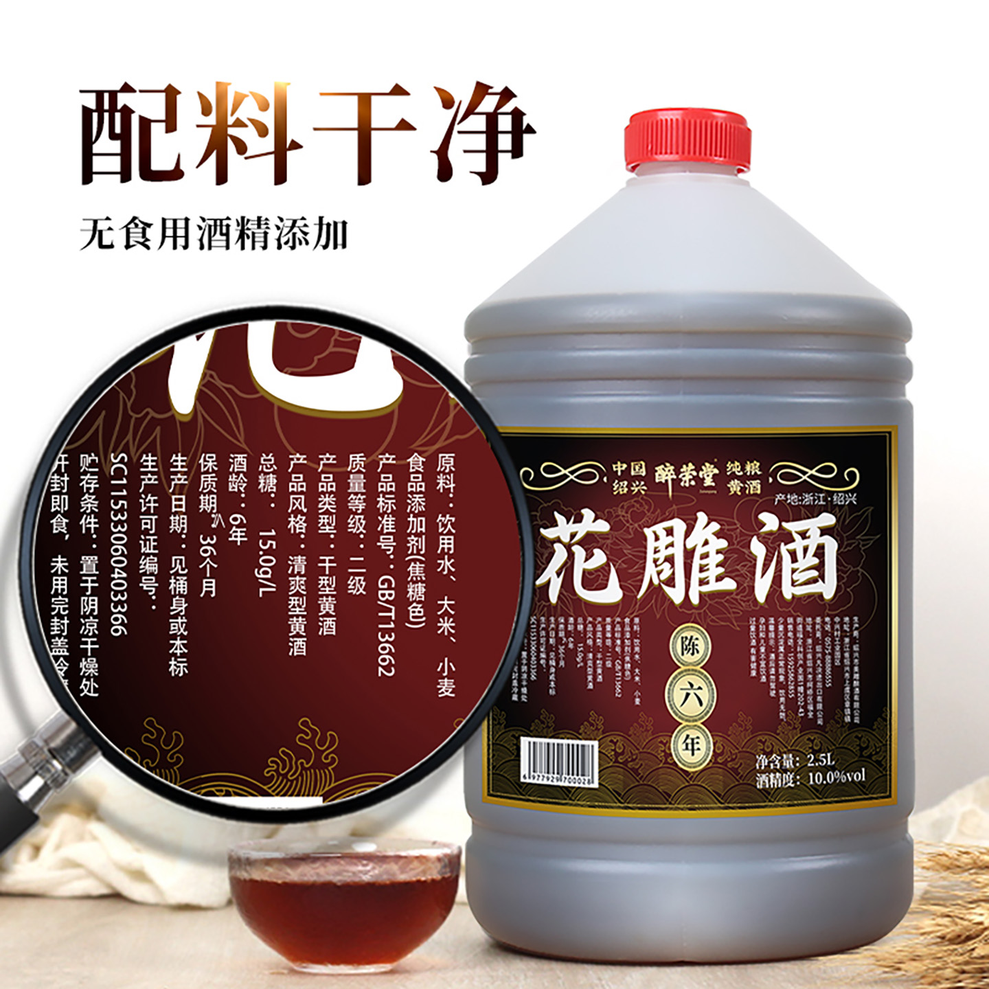 醉荣堂花雕酒绍兴官方旗舰店正宗老黄酒八年陈5斤加饭酒料酒醉蟹
