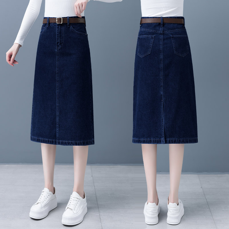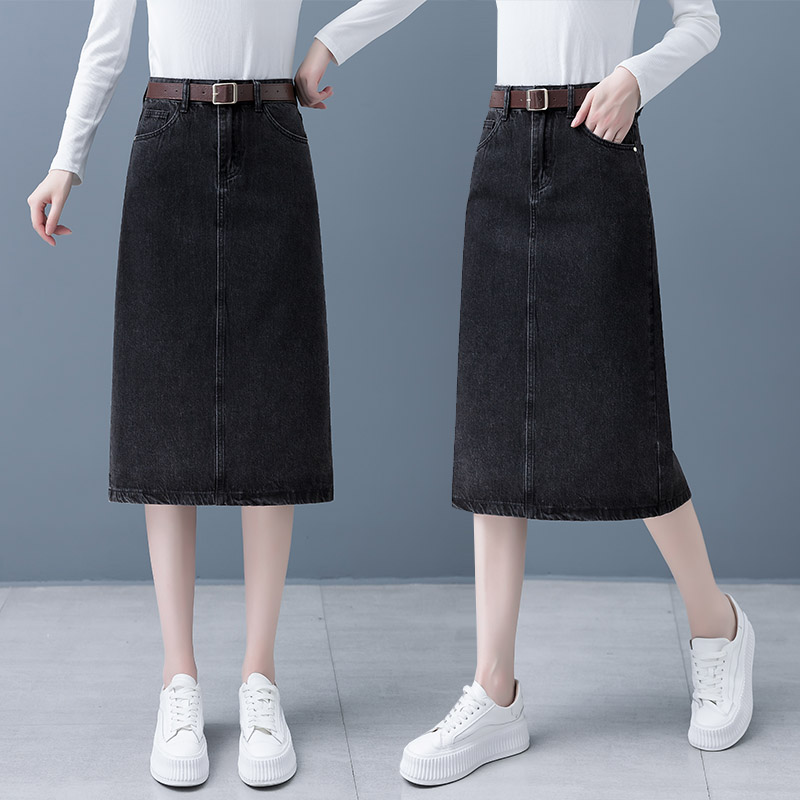啄木鸟牛仔半身裙女士秋冬季新款高腰时尚a字一步中长款包臀裙子