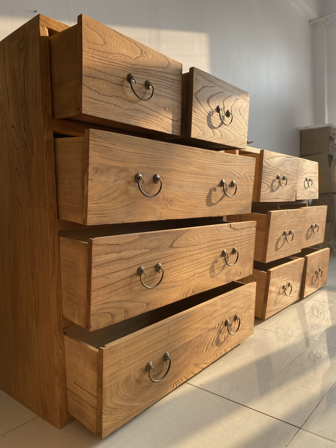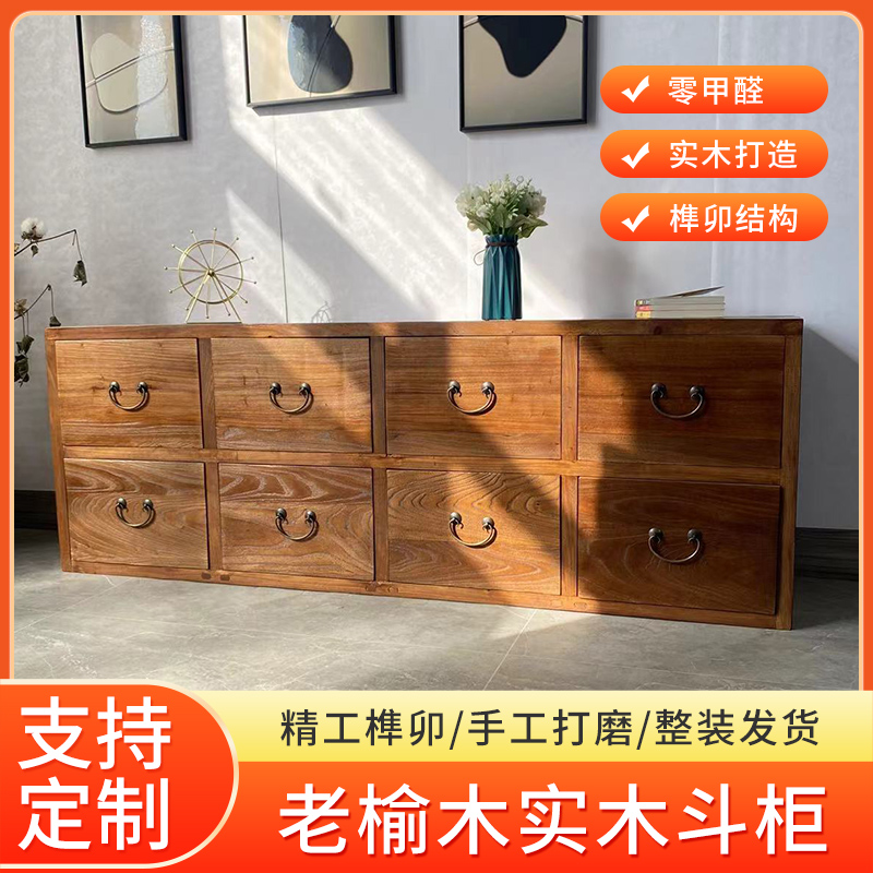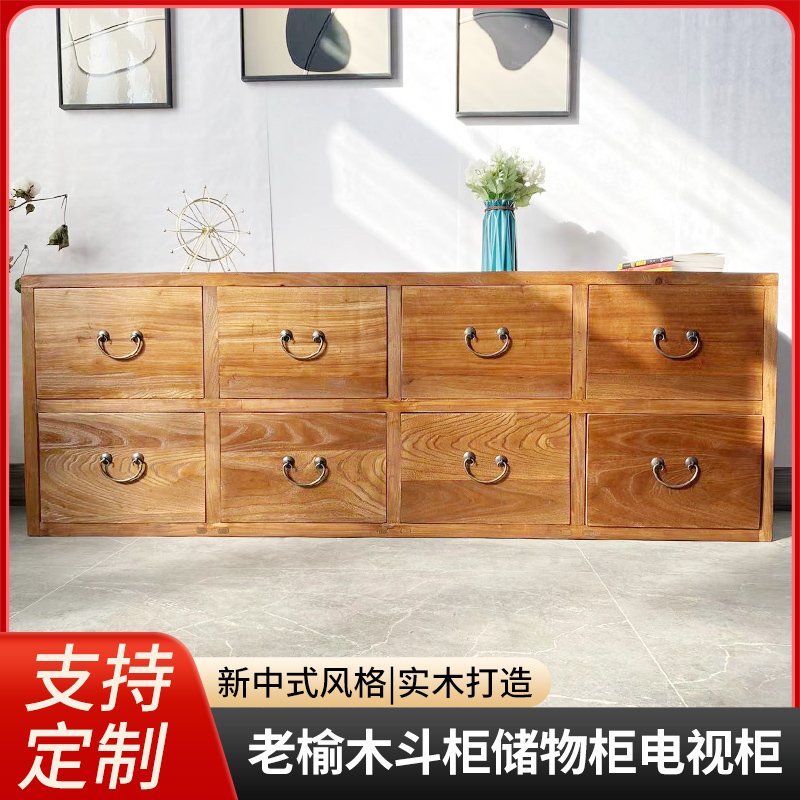 实木老榆木斗柜新中式收纳储藏柜收纳抽屉柜复古餐边柜客厅定制