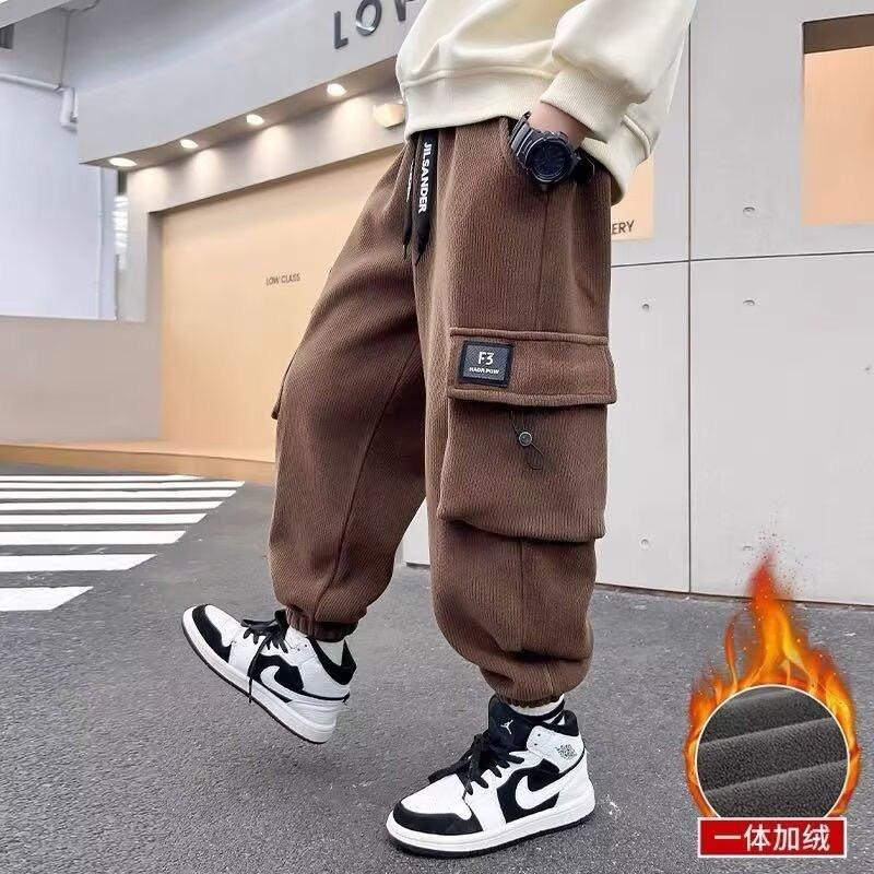 儿童装男童加绒加厚裤子秋冬款灯芯绒一体绒2024新款冬季运动裤潮
