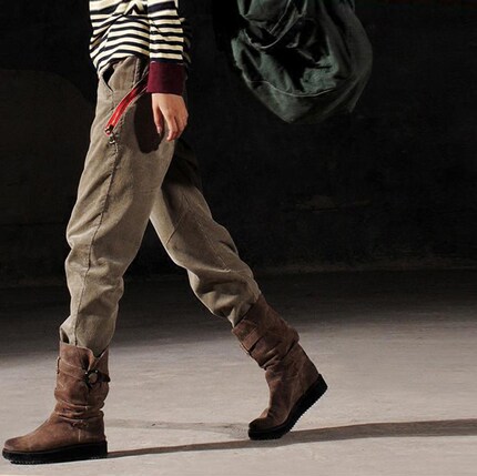 高腰宽松休闲灯芯绒文艺bf风女裤