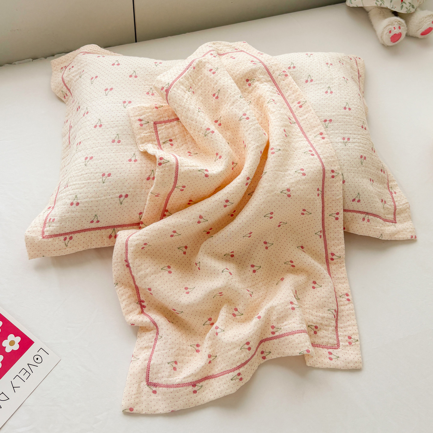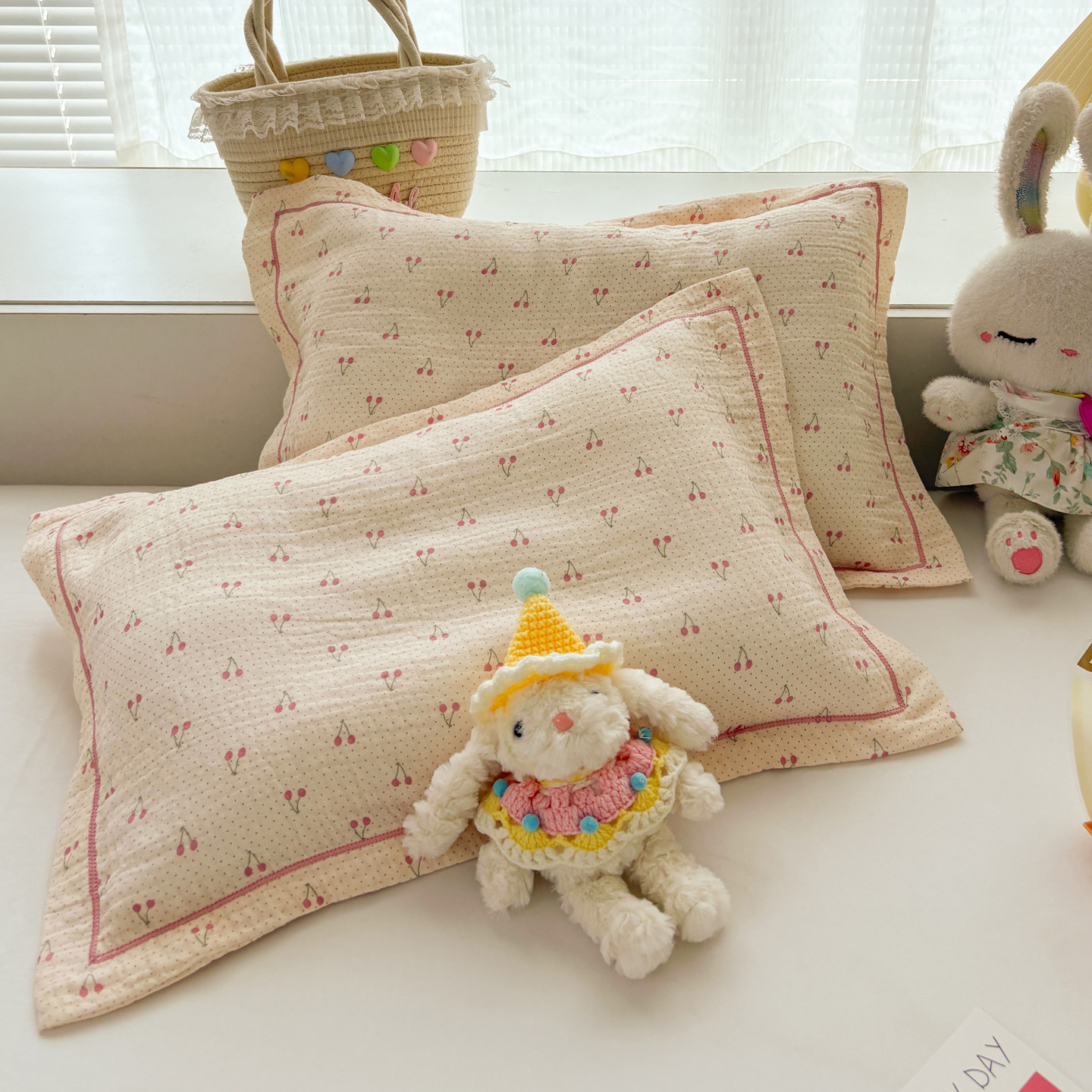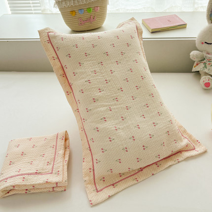 儿童纯棉纱布枕套30x50宝宝35x55幼儿园小号樱桃全棉枕头套枕芯套