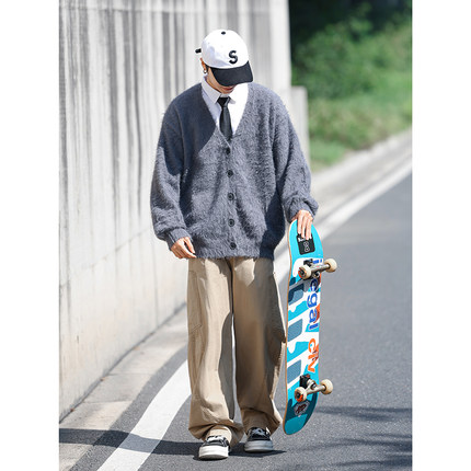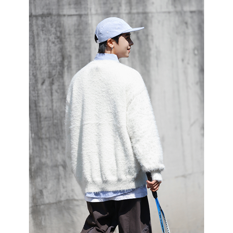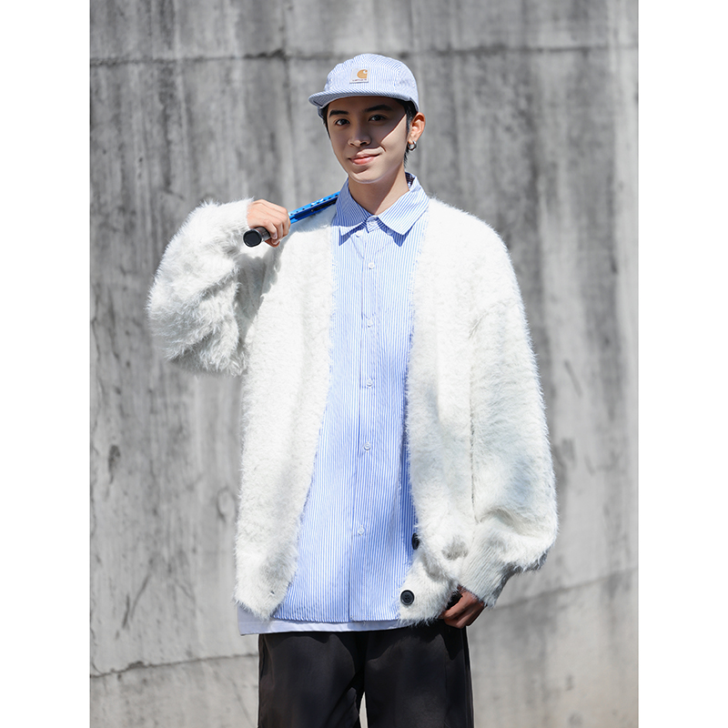 灰色毛衣开衫V领男款韩系早秋高级感穿搭cleanfit仿貂绒针织毛衫