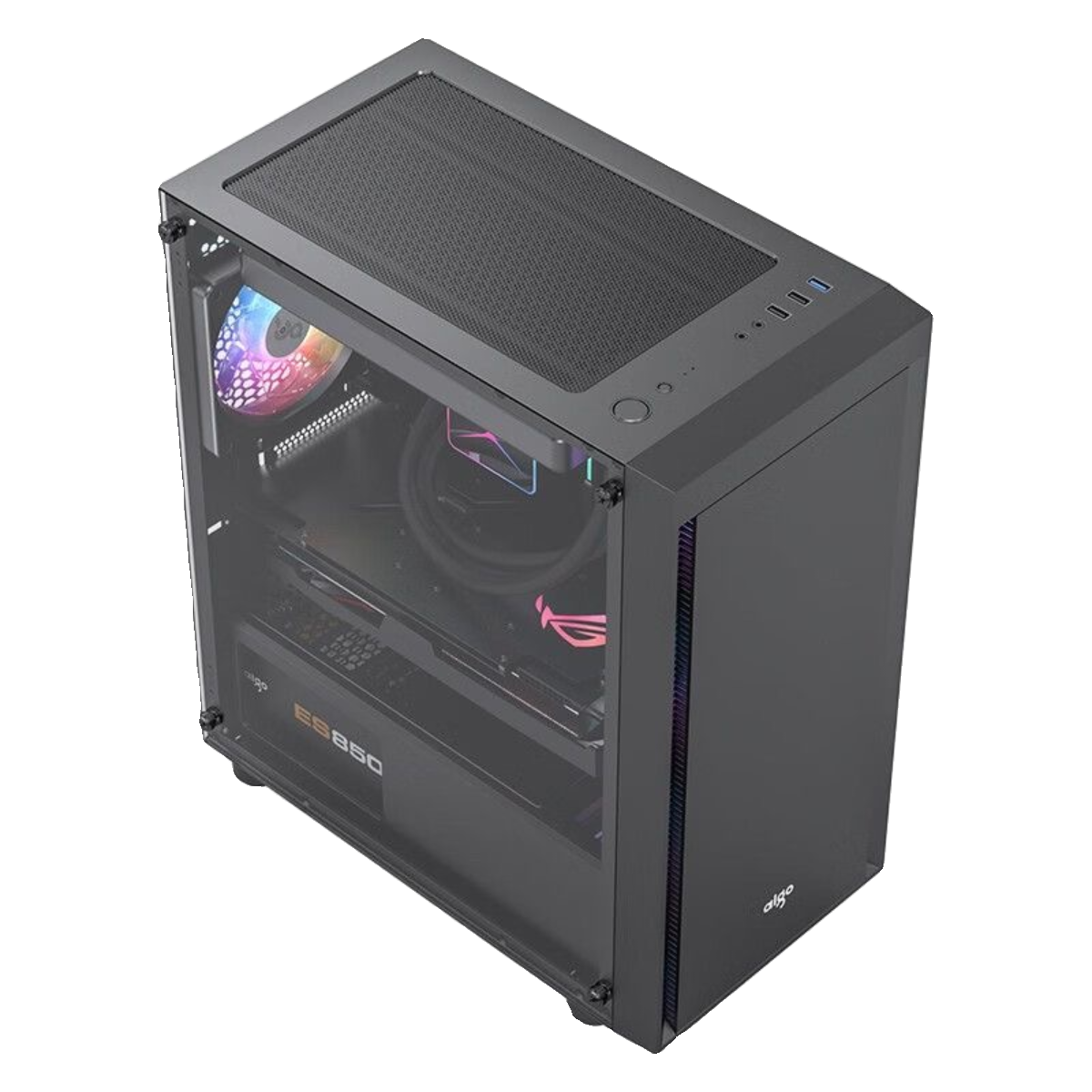 爱国者V12黑色机箱电脑台式主机箱电源套装matx亚克力侧透机箱