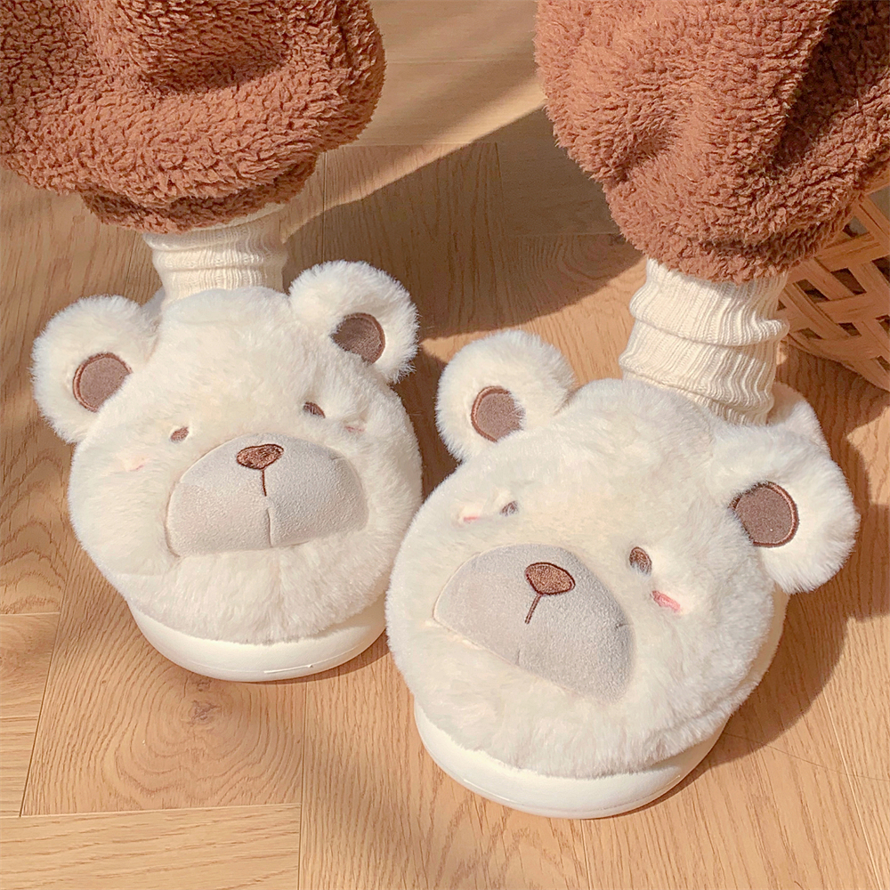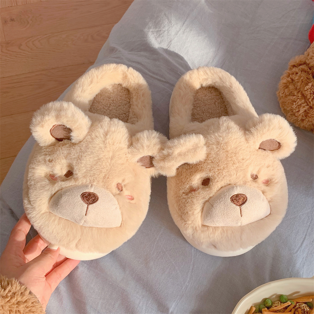防滑软底情侣可爱居家毛毛鞋卡通小熊男女冬季室内保暖新款棉拖鞋