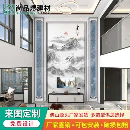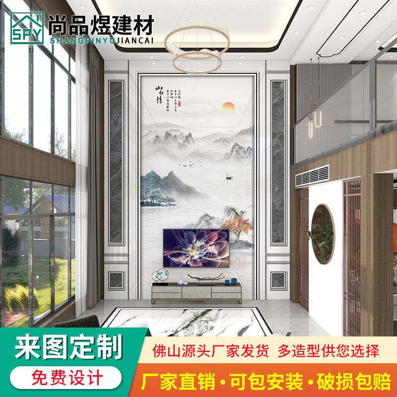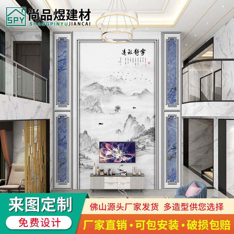 视复电视背景墙瓷砖轻奢客厅约楼中楼T344现代简微晶石岩板影墙装