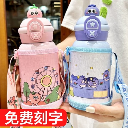 哈尔斯款双饮儿童保温杯带吸管316不锈钢男女幼儿园小学生上学专