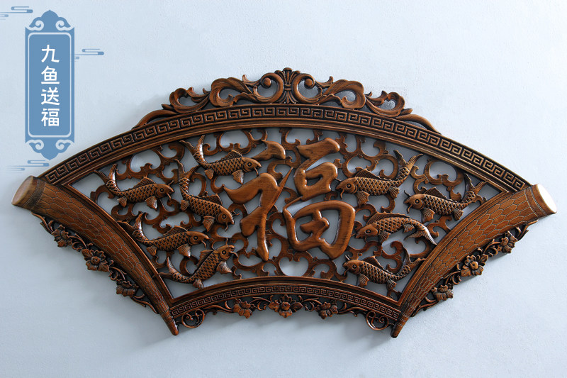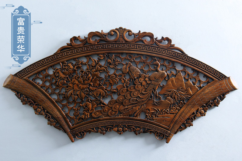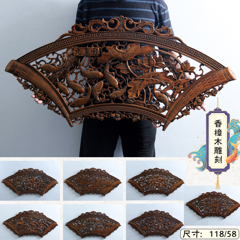 东阳木雕刻工艺品客厅玄关卧室背景墙装饰品中式挂件香樟木 扇形