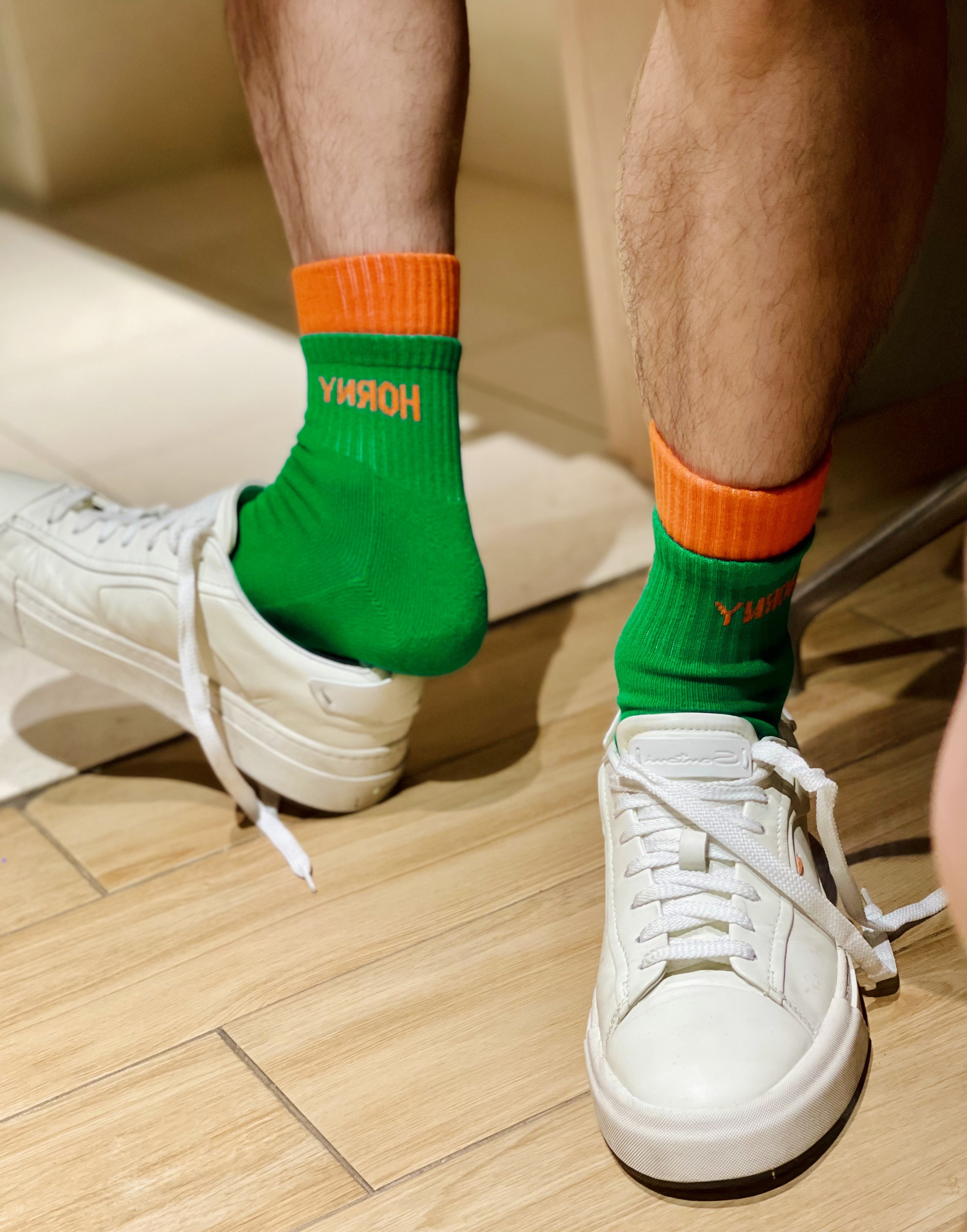 D.M男袜拼色毛圈运动字母中筒袜撞色休闲时尚棉袜子潮棉吸汗四季