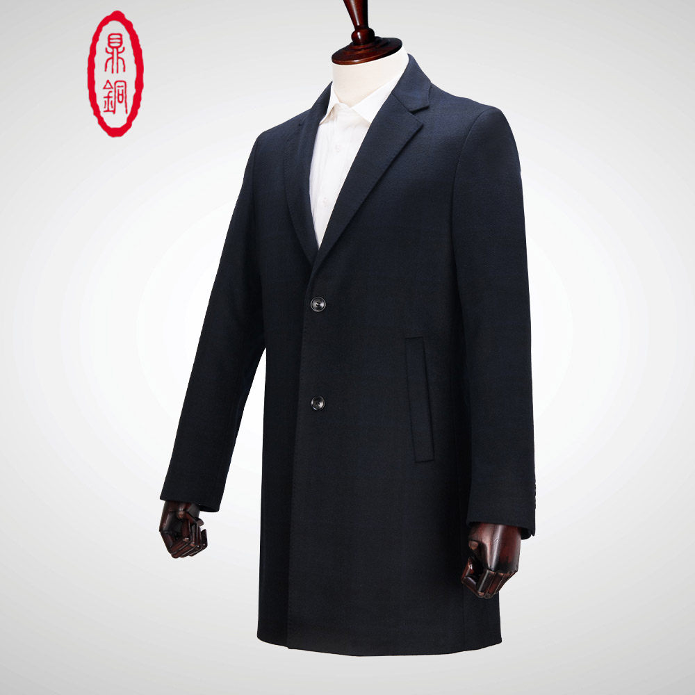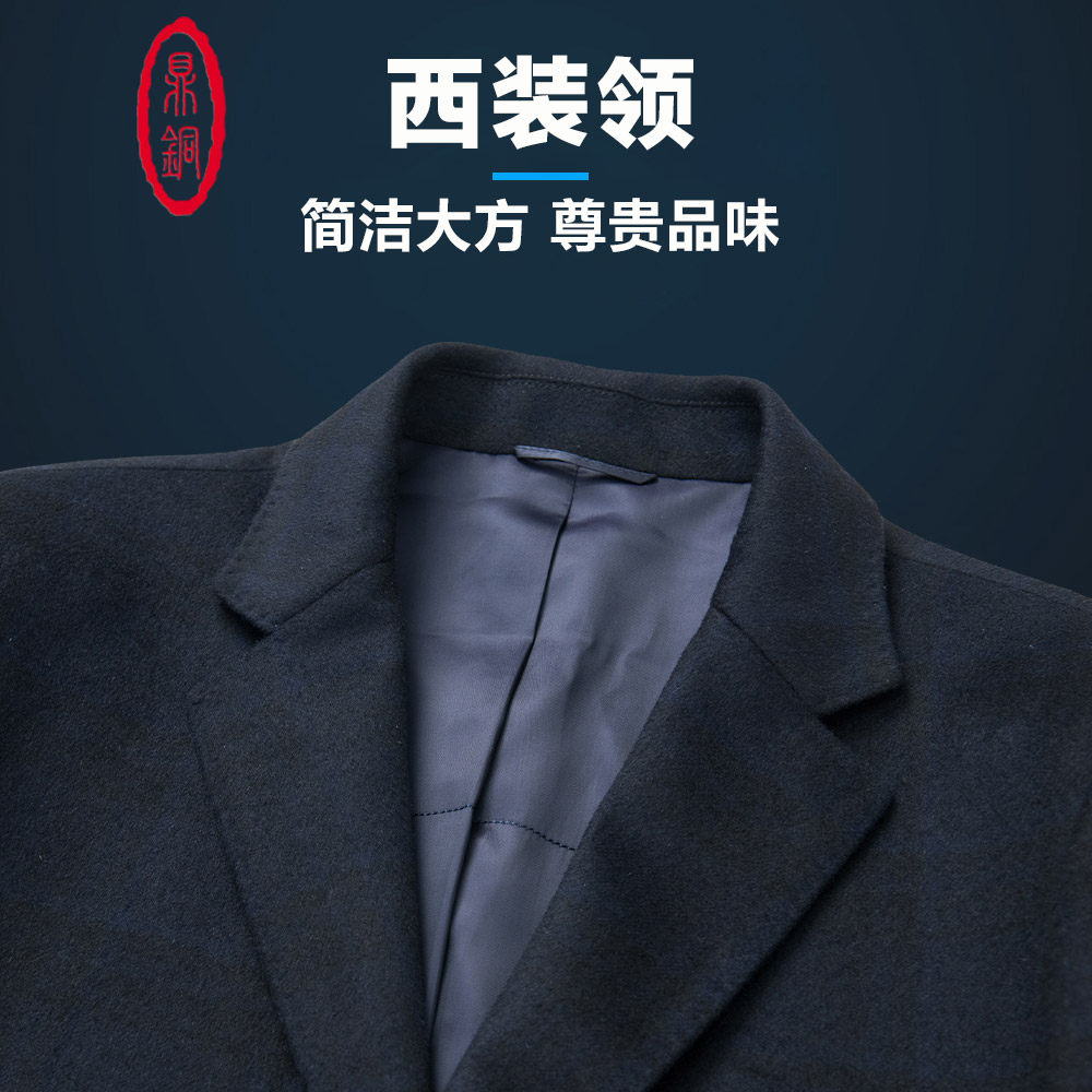 鼎铜西装领羊毛大衣男商务秋冬季中年男士中长款高端毛呢西服外套