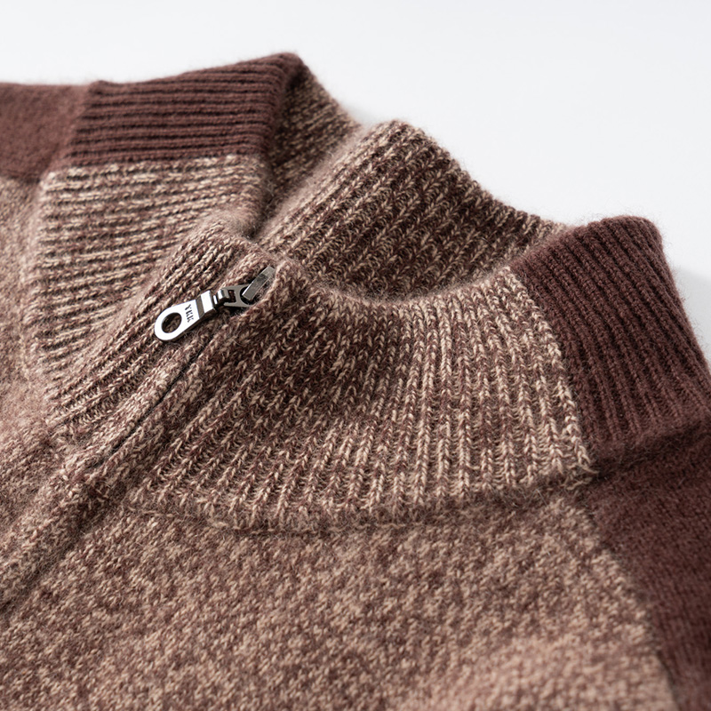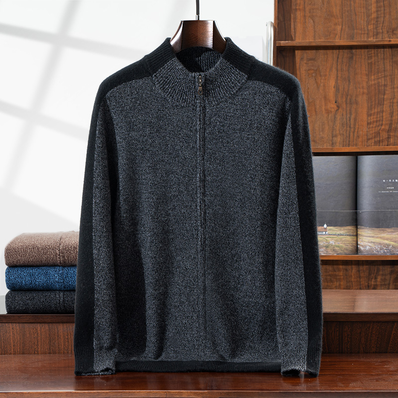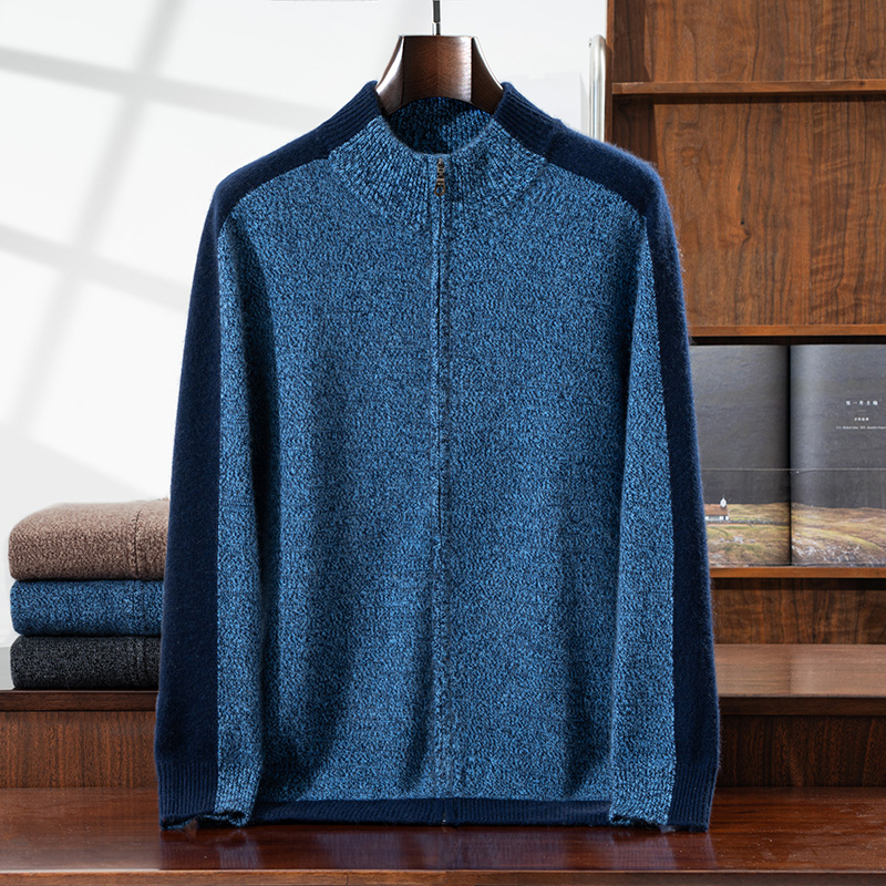 秋冬新款山羊绒男士空气层开衫针织加厚半高领拉链毛衣打底羊毛衫