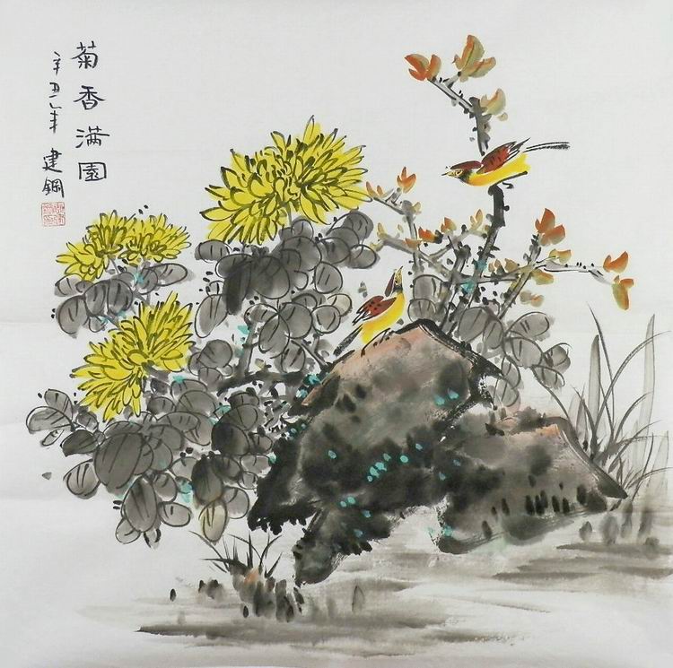 纯手绘字画中式客厅办公室装饰画李建钢四尺斗方写意国画花鸟画GG