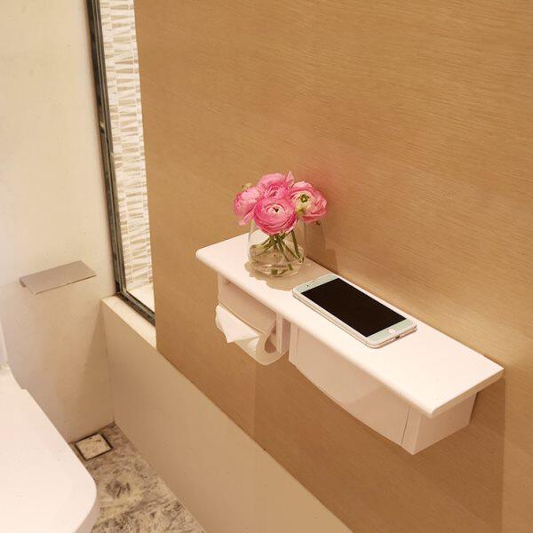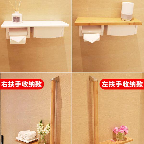 纸巾盒带楠竹纸巾架收纳盒厠所置物架卷纸筒卫生间防水免打孔扶手