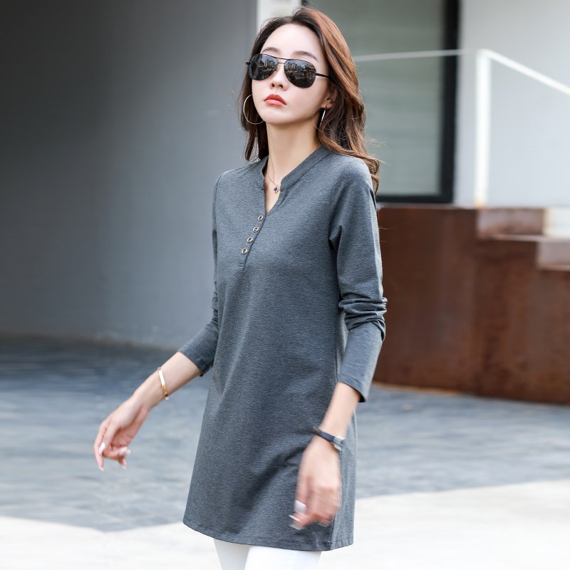中长款打底衫女春秋2024新款宽松遮肚上衣长袖百搭遮屁股T恤纯棉