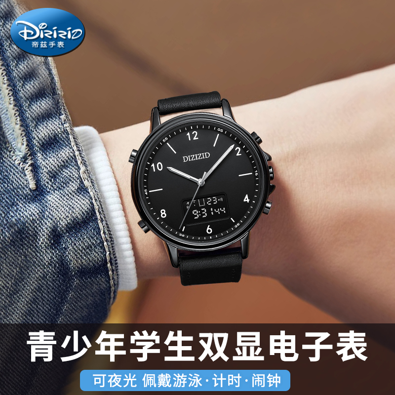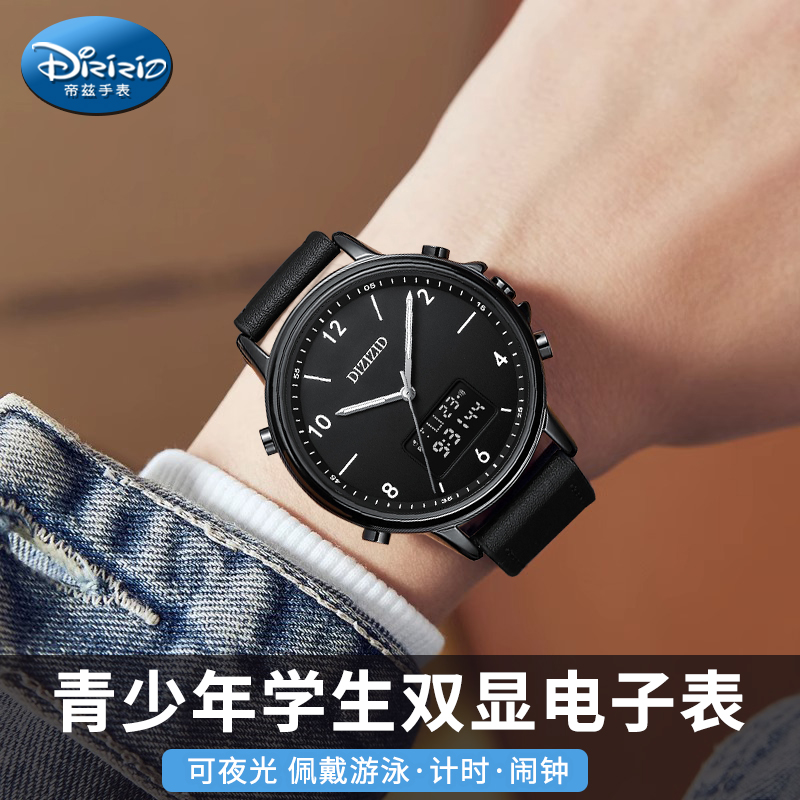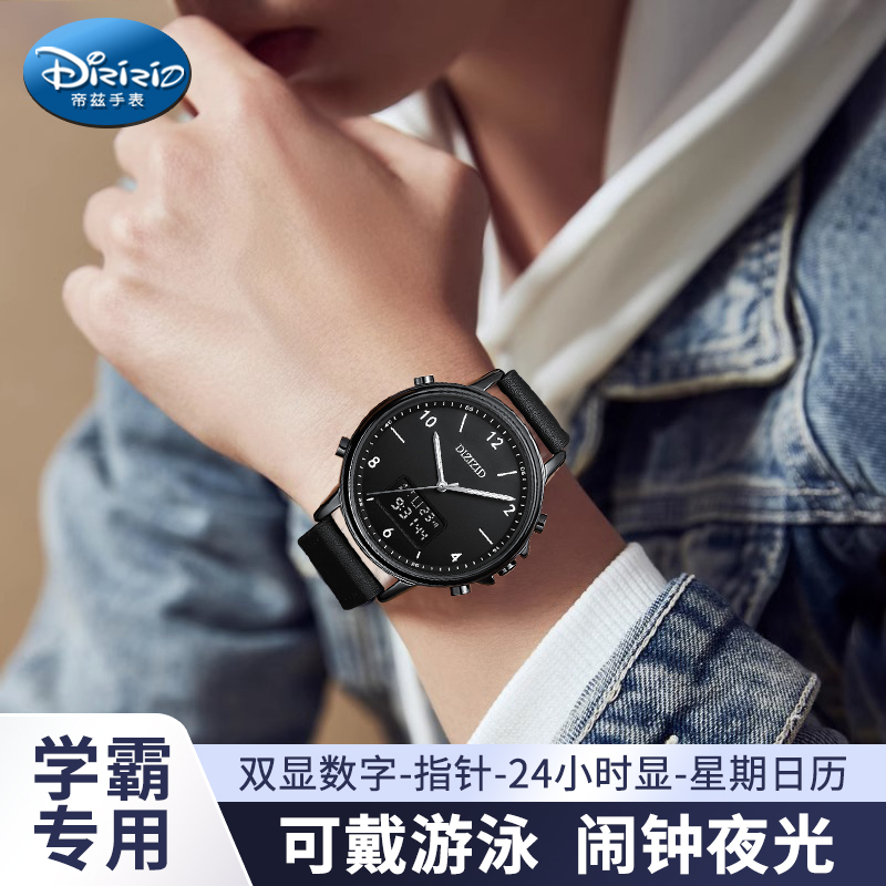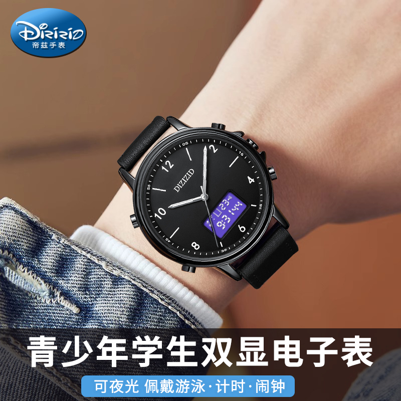 2025新款初中青少年手表男款高中学生专用电子表防水闹钟男孩夜光